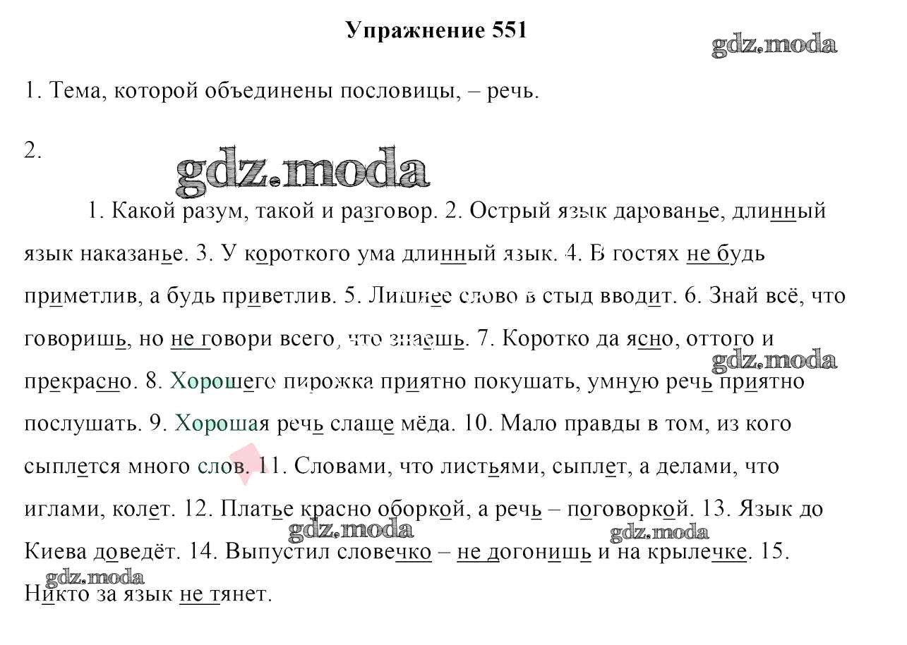 ОТВЕТ на задание № 551 Учебник по Русскому языку 6 класс Мурина