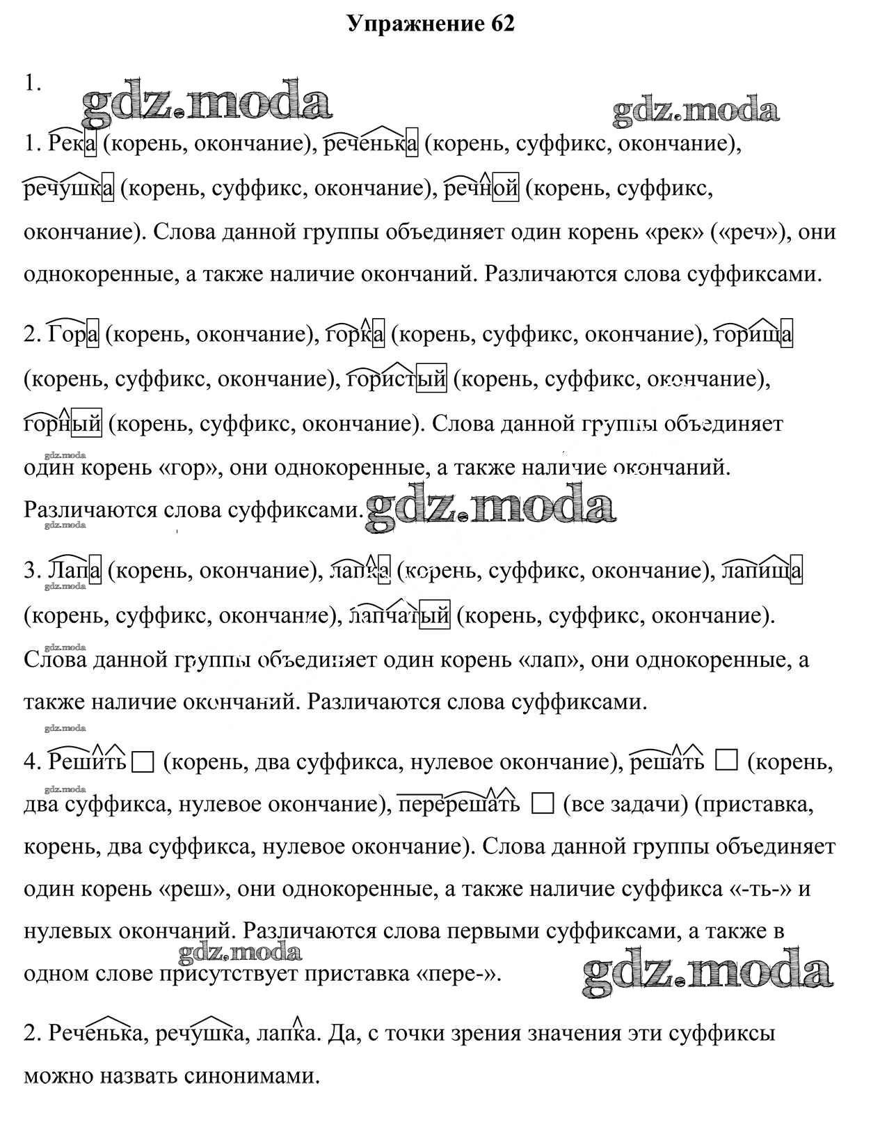 ОТВЕТ на задание № 62 Учебник по Русскому языку 6 класс Мурина