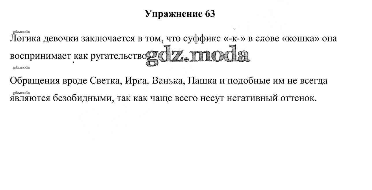 ОТВЕТ на задание № 63 Учебник по Русскому языку 6 класс Мурина