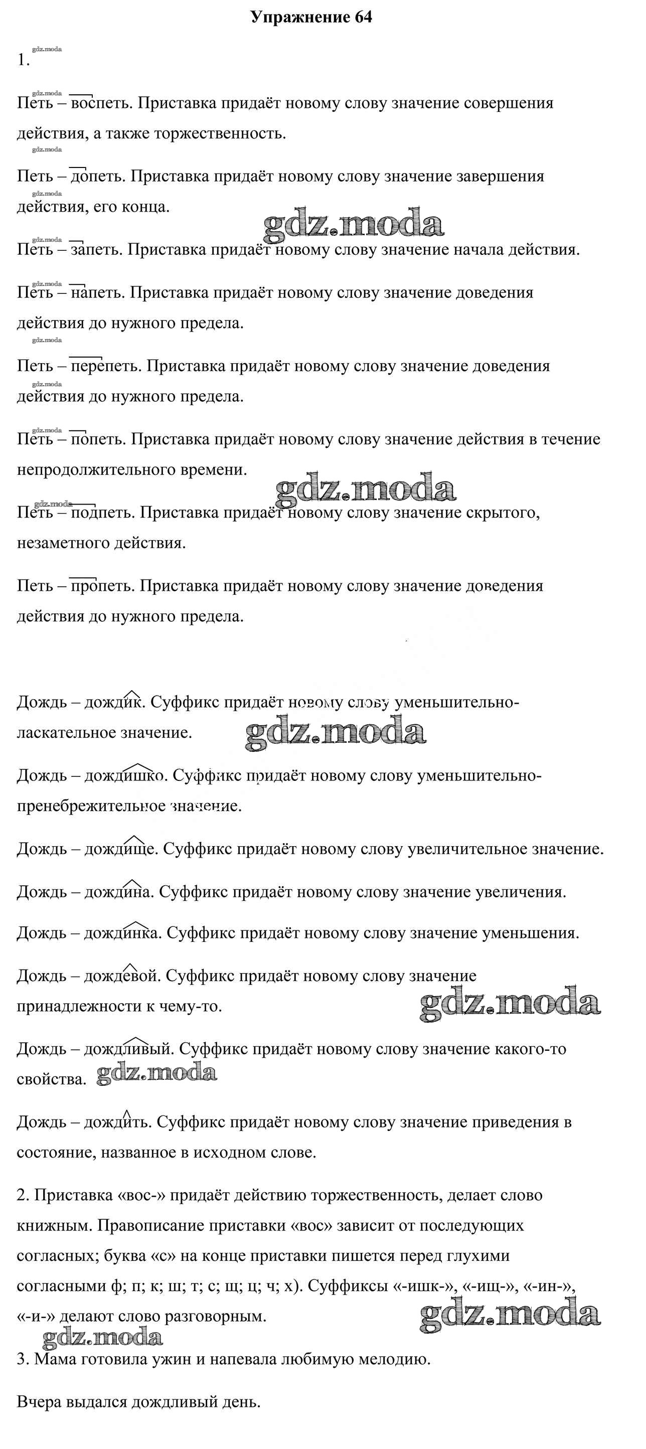 ОТВЕТ на задание № 64 Учебник по Русскому языку 6 класс Мурина
