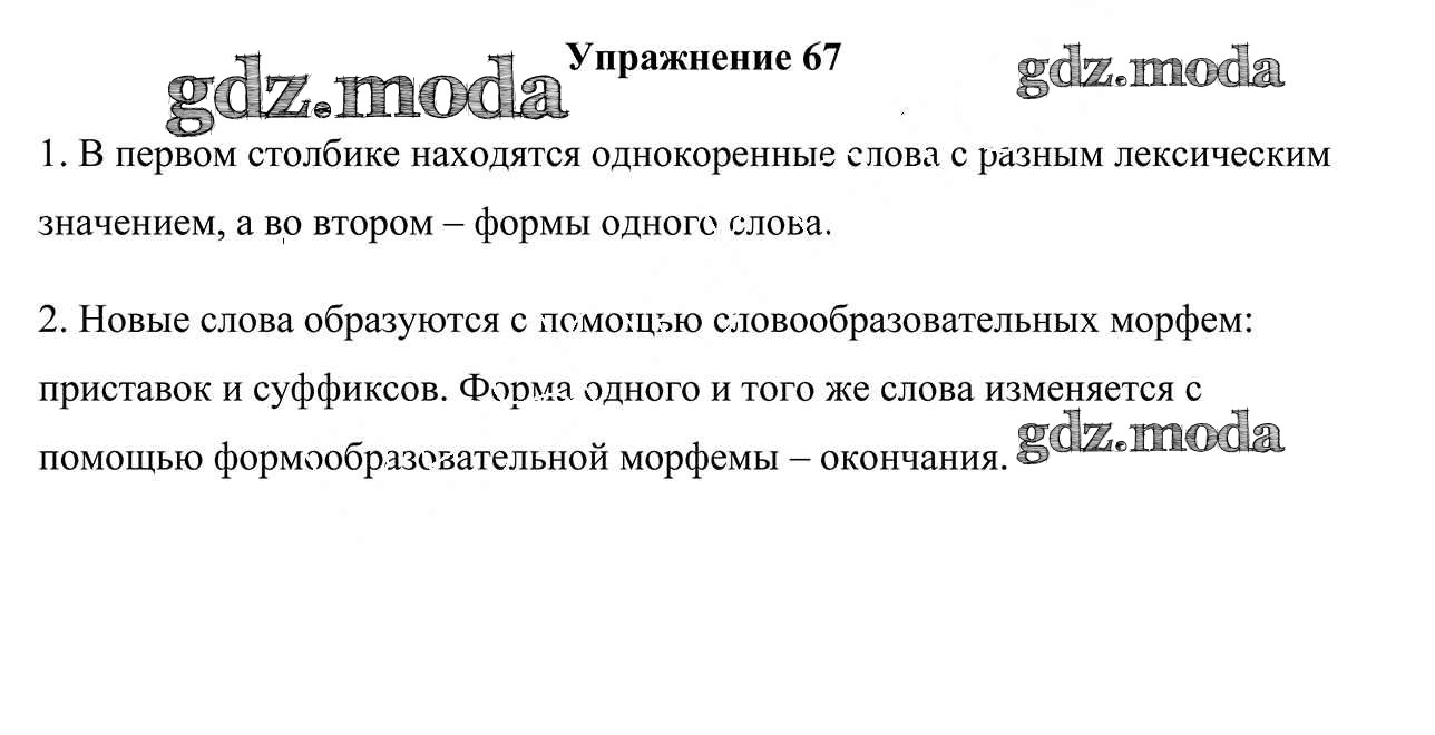 ОТВЕТ на задание № 67 Учебник по Русскому языку 6 класс Мурина