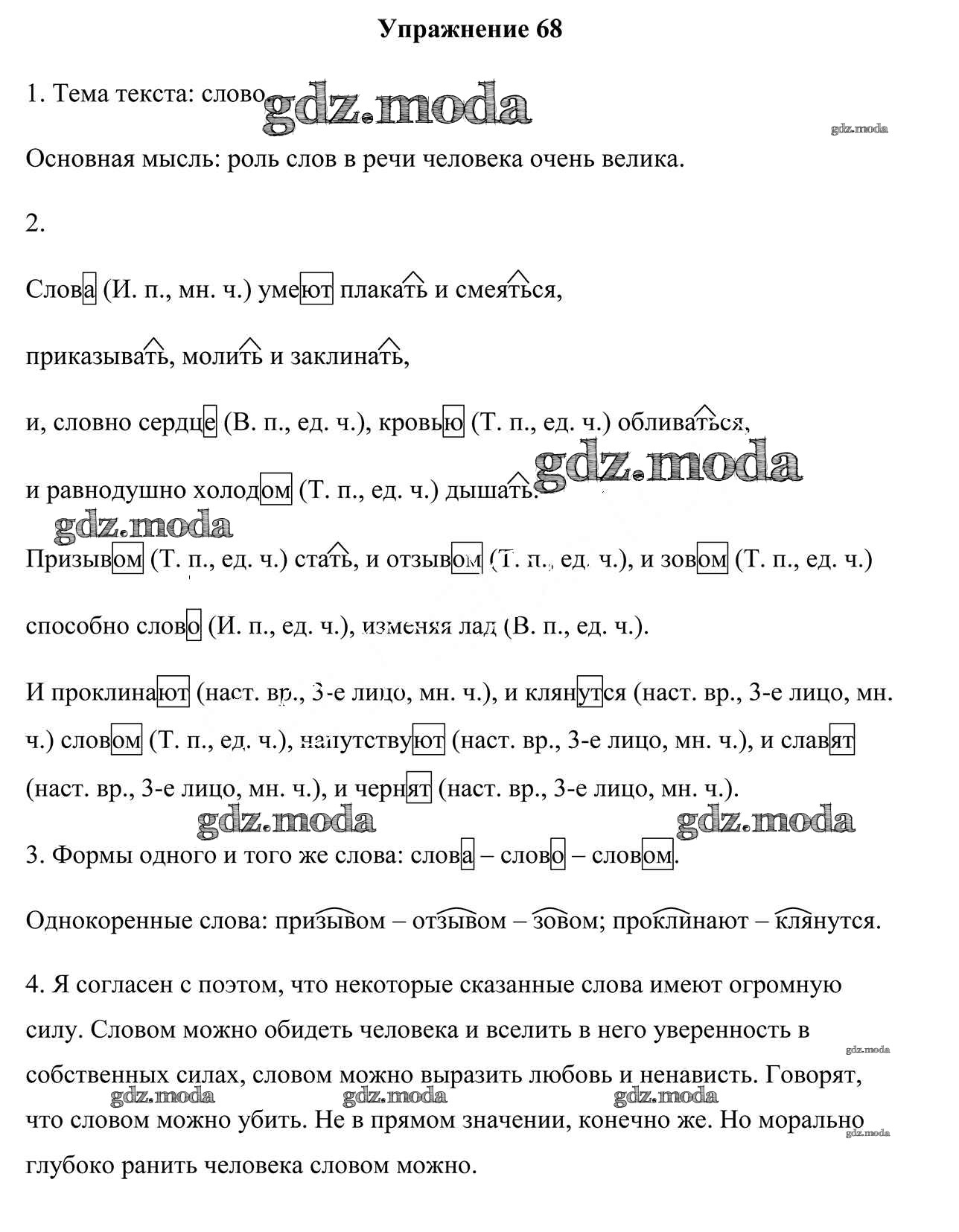 ОТВЕТ на задание № 68 Учебник по Русскому языку 6 класс Мурина