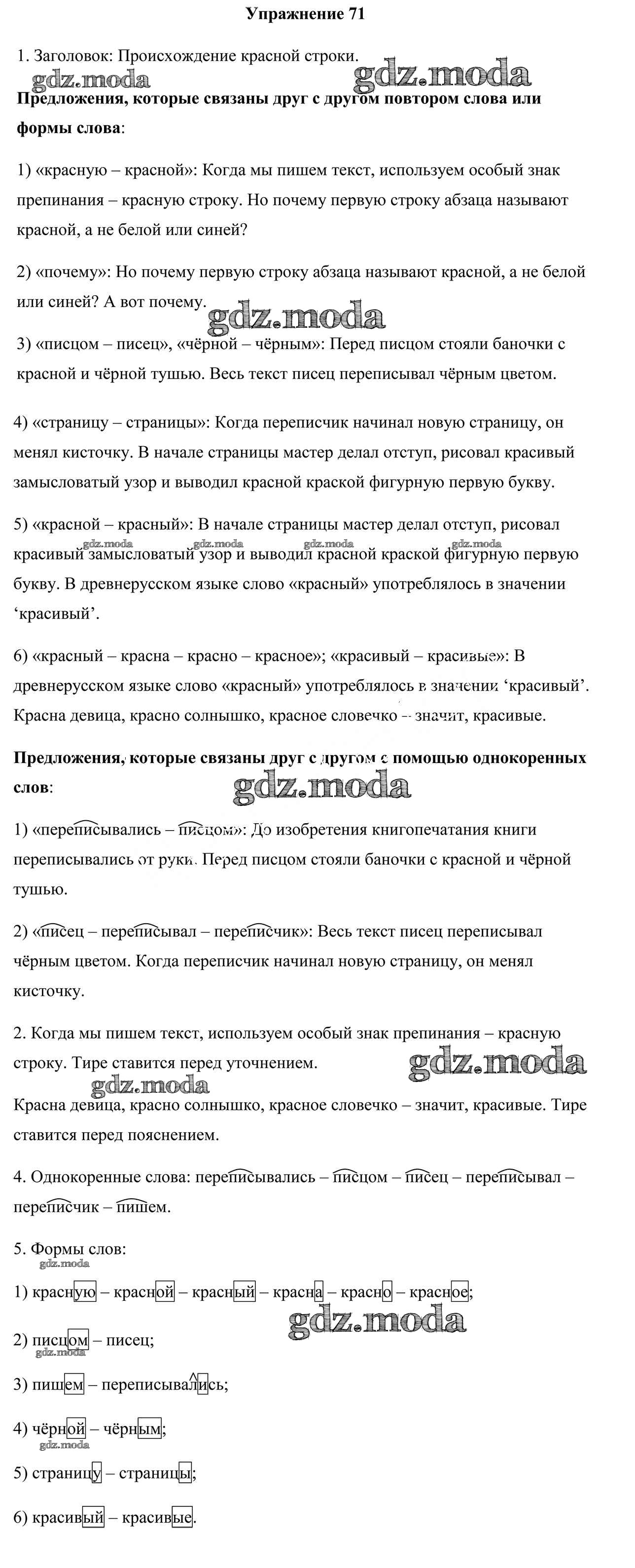 ОТВЕТ на задание № 71 Учебник по Русскому языку 6 класс Мурина