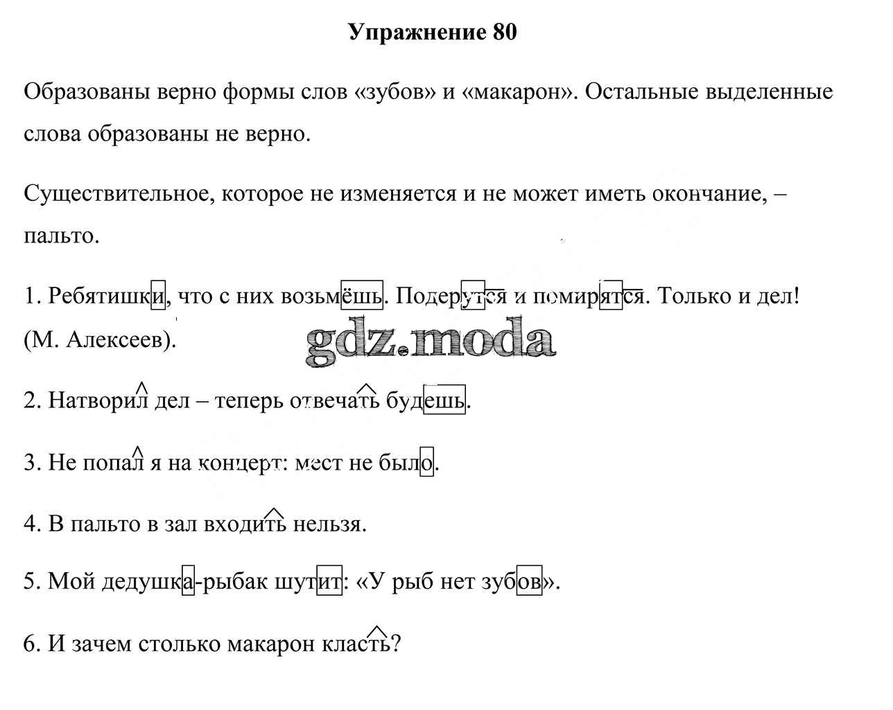 ОТВЕТ на задание № 80 Учебник по Русскому языку 6 класс Мурина