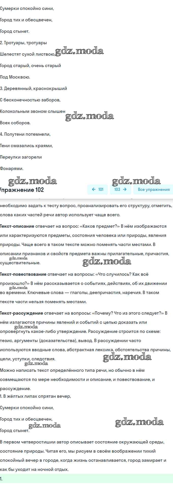 ОТВЕТ на задание № 102 Рабочая тетрадь по Русскому языку 6 класс Гостева УМК