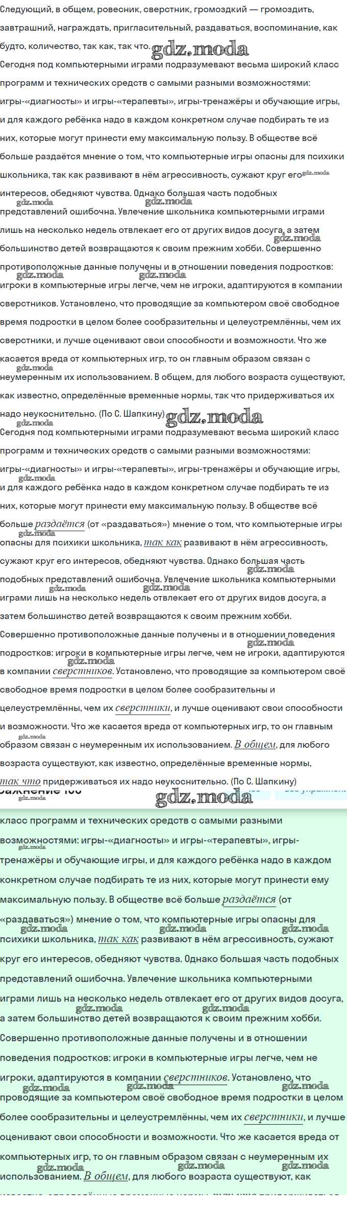 ОТВЕТ на задание № 103 Рабочая тетрадь по Русскому языку 6 класс Гостева УМК