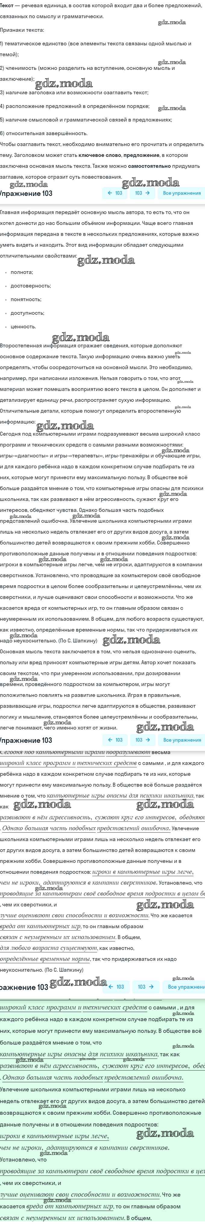 ГДЗ решение к заданию № 103 Русский язык 6 класс рабочая тетрадь Гостева Ю.Н. Экзамен 2015 ФГОС бесплатно на гдз.мода!