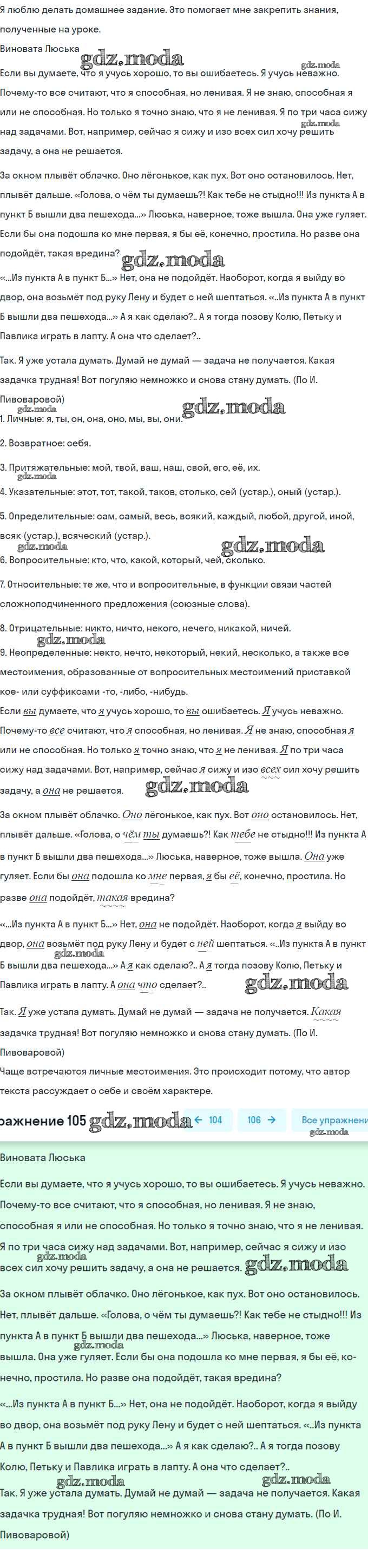 ОТВЕТ на задание № 105 Рабочая тетрадь по Русскому языку 6 класс Гостева УМК