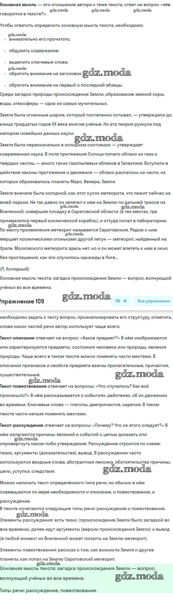 ОТВЕТ на задание № 109 Рабочая тетрадь по Русскому языку 6 класс Гостева УМК
