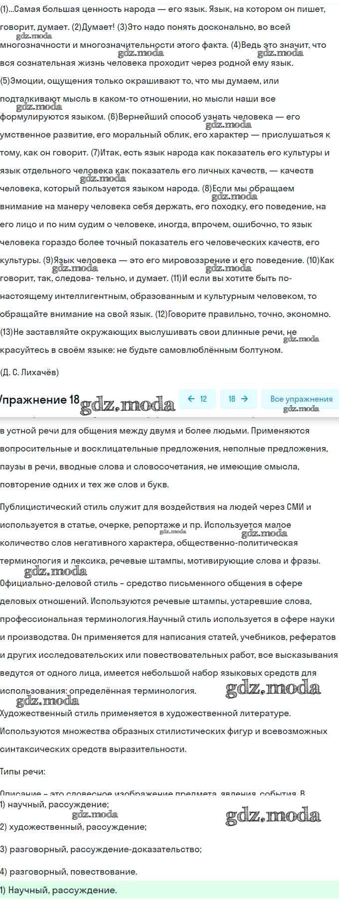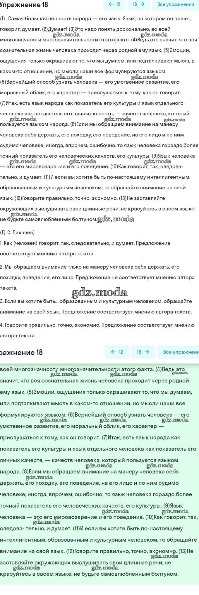ОТВЕТ на задание № 18 Рабочая тетрадь по Русскому языку 6 класс Гостева УМК