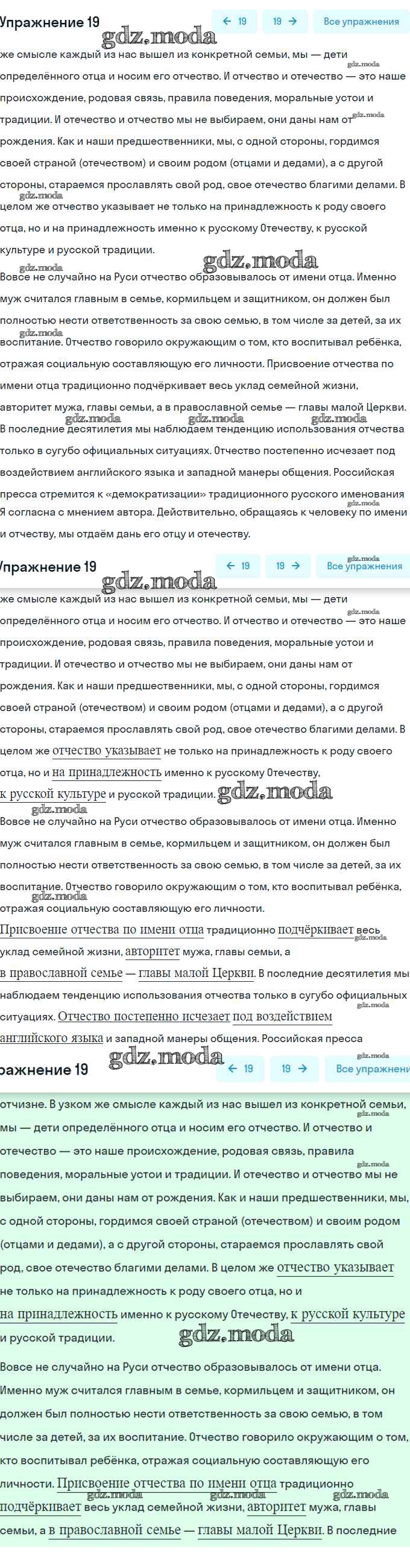 ОТВЕТ на задание № 19 Рабочая тетрадь по Русскому языку 6 класс Гостева УМК