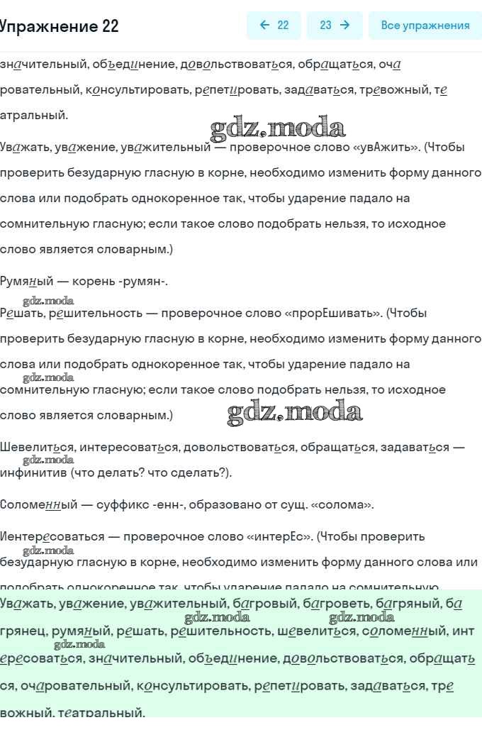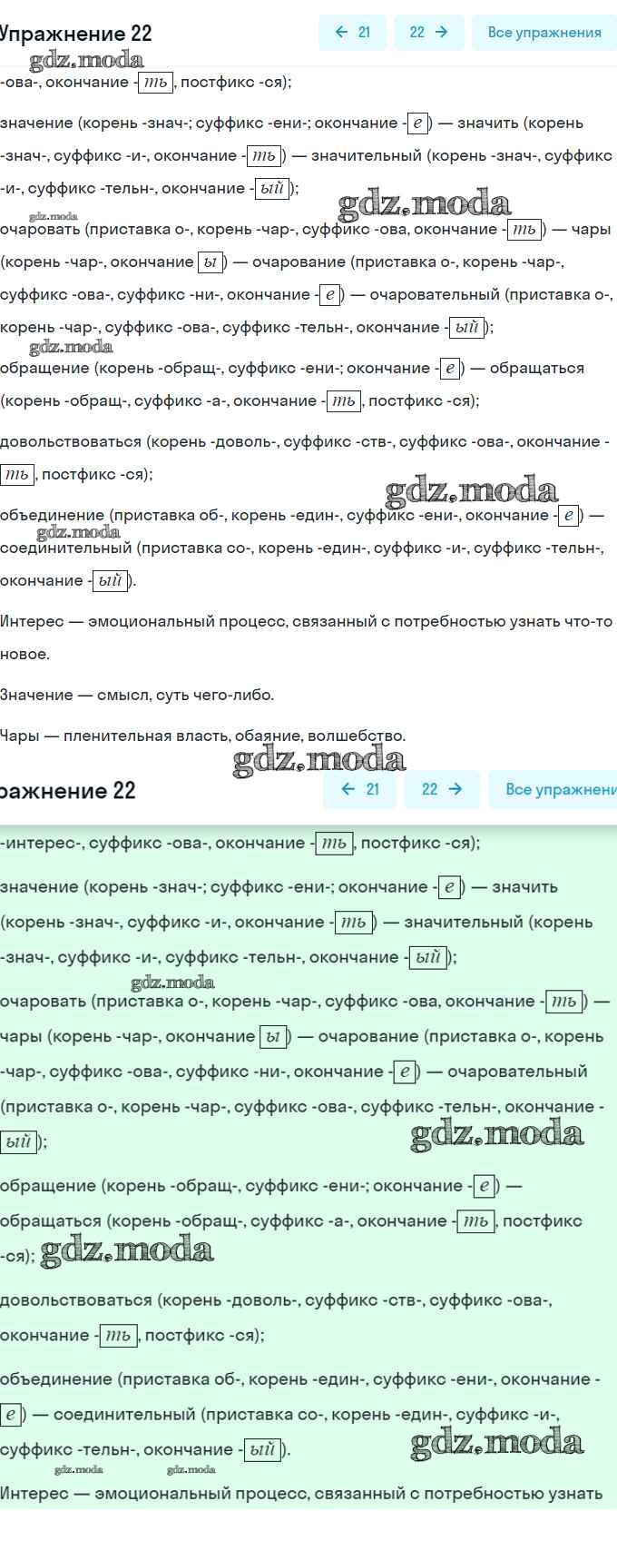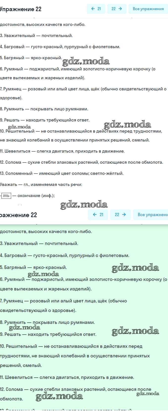 ОТВЕТ на задание № 22 Рабочая тетрадь по Русскому языку 6 класс Гостева УМК