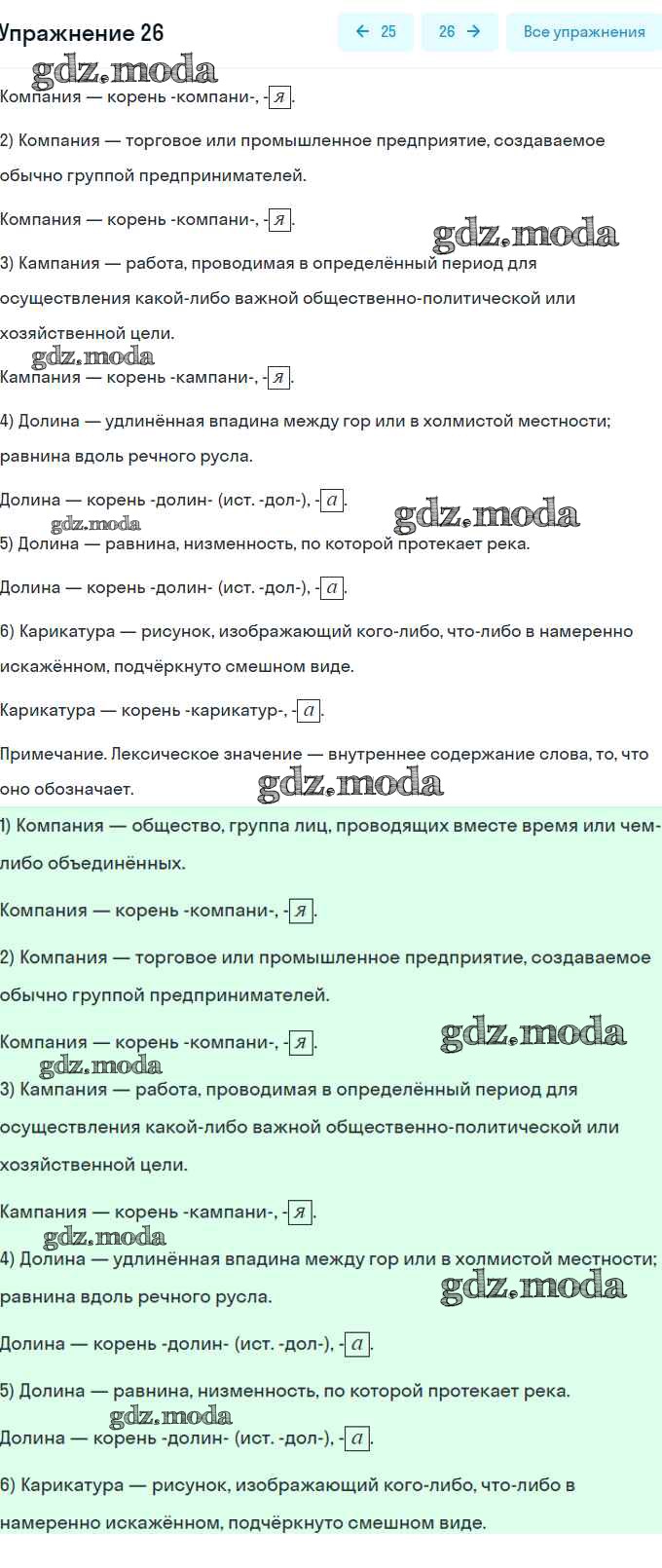 ОТВЕТ на задание № 26 Рабочая тетрадь по Русскому языку 6 класс Гостева УМК