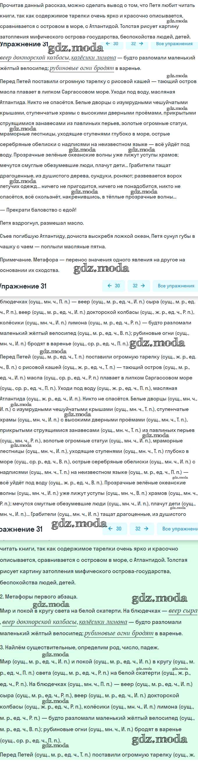 ОТВЕТ на задание № 31 Рабочая тетрадь по Русскому языку 6 класс Гостева УМК