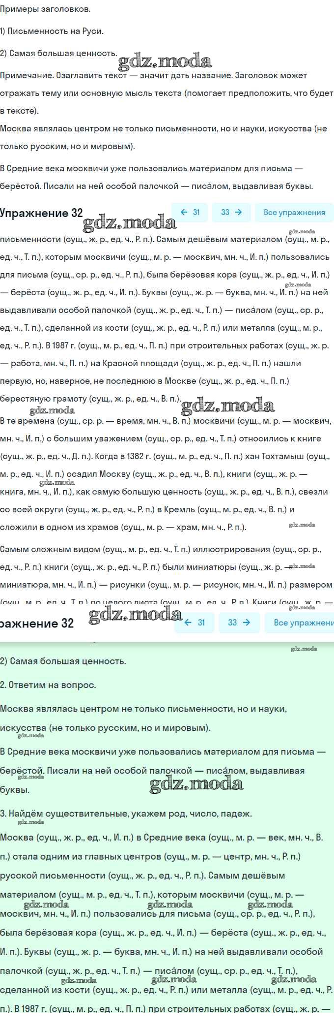 ОТВЕТ на задание № 32 Рабочая тетрадь по Русскому языку 6 класс Гостева УМК