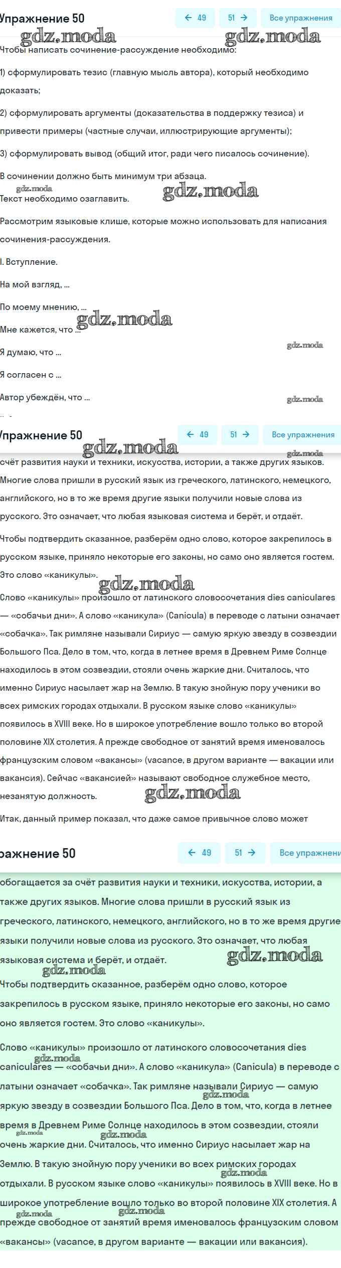 ГДЗ решение к заданию № 50 Русский язык 6 класс рабочая тетрадь Гостева Ю.Н. Экзамен 2015 ФГОС бесплатно на гдз.мода!