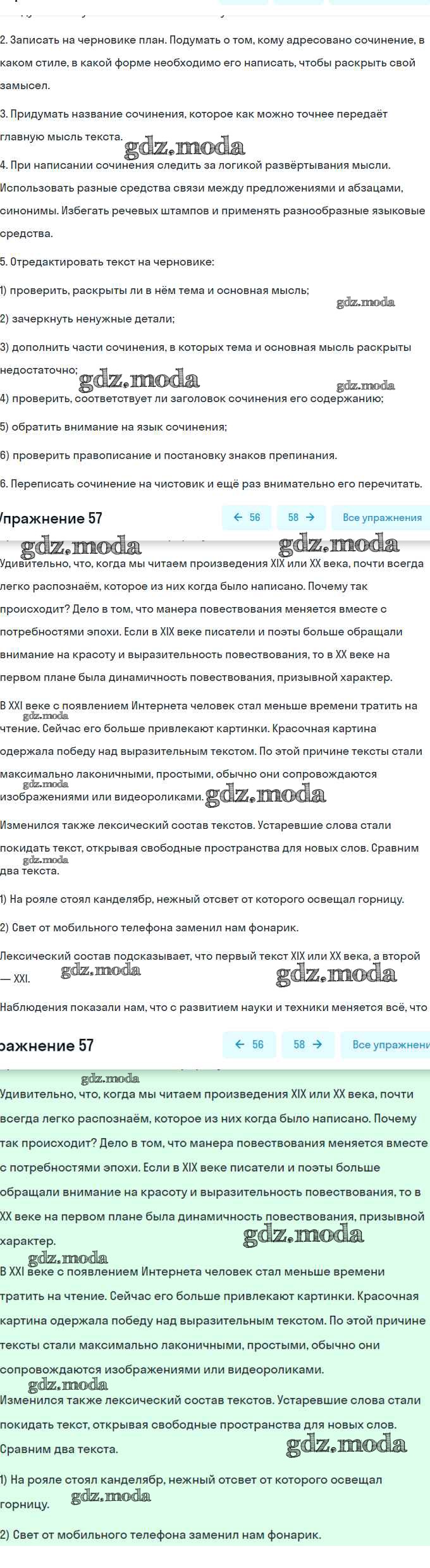 ГДЗ решение к заданию № 57 Русский язык 6 класс рабочая тетрадь Гостева Ю.Н. Экзамен 2015 ФГОС бесплатно на гдз.мода!