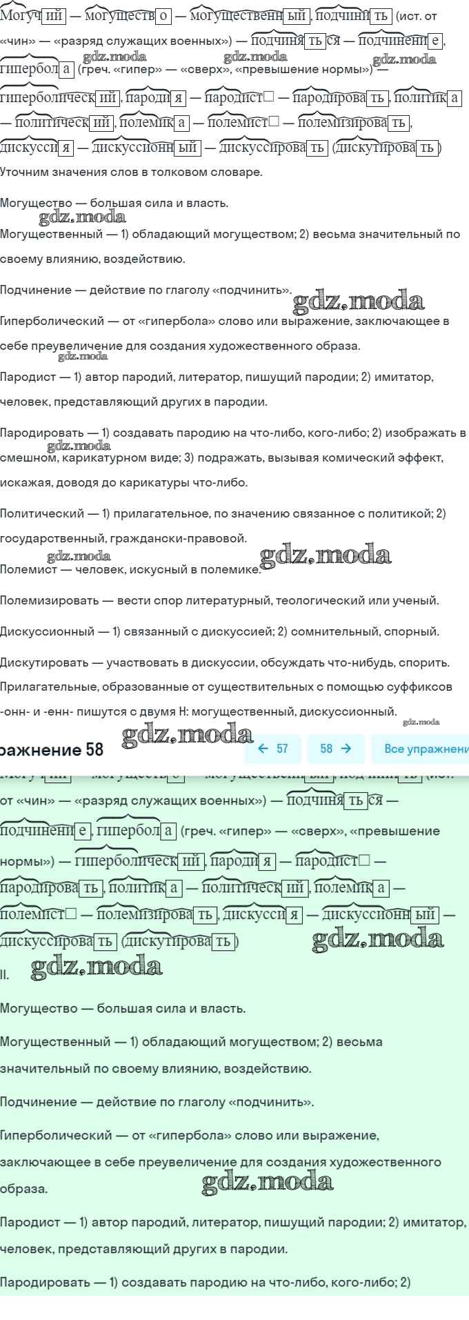 ОТВЕТ на задание № 58 Рабочая тетрадь по Русскому языку 6 класс Гостева УМК