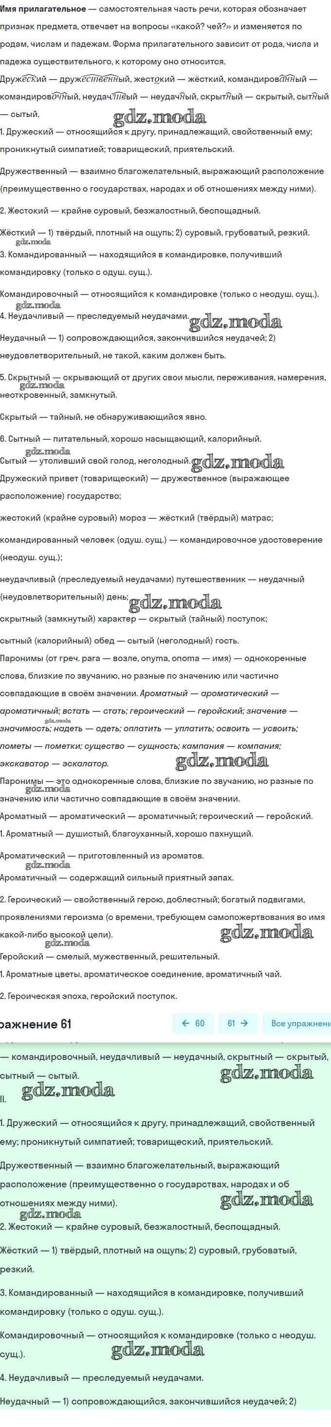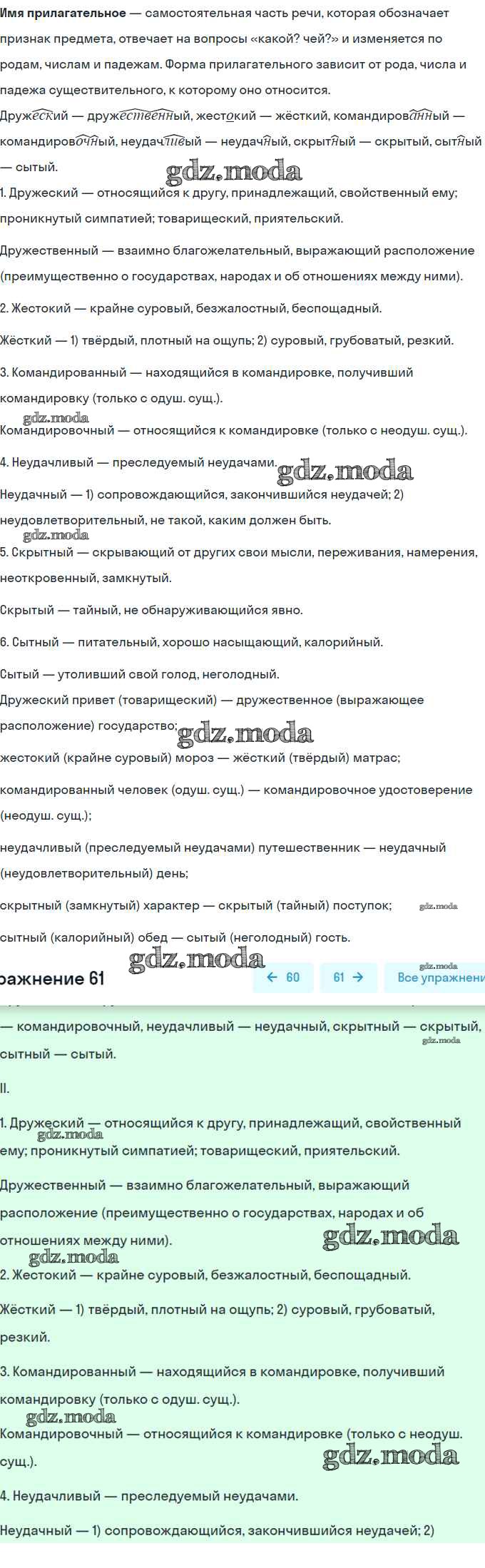 ОТВЕТ на задание № 61 Рабочая тетрадь по Русскому языку 6 класс Гостева УМК