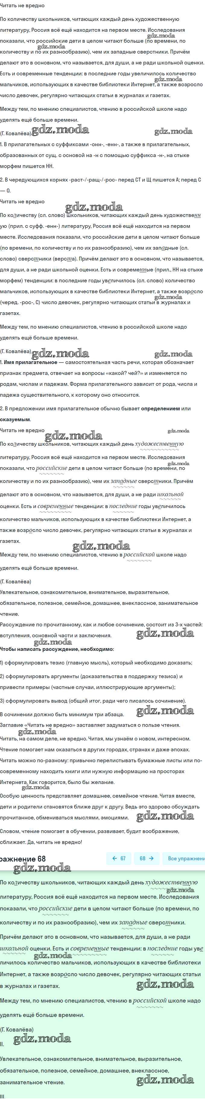 ОТВЕТ на задание № 68 Рабочая тетрадь по Русскому языку 6 класс Гостева УМК