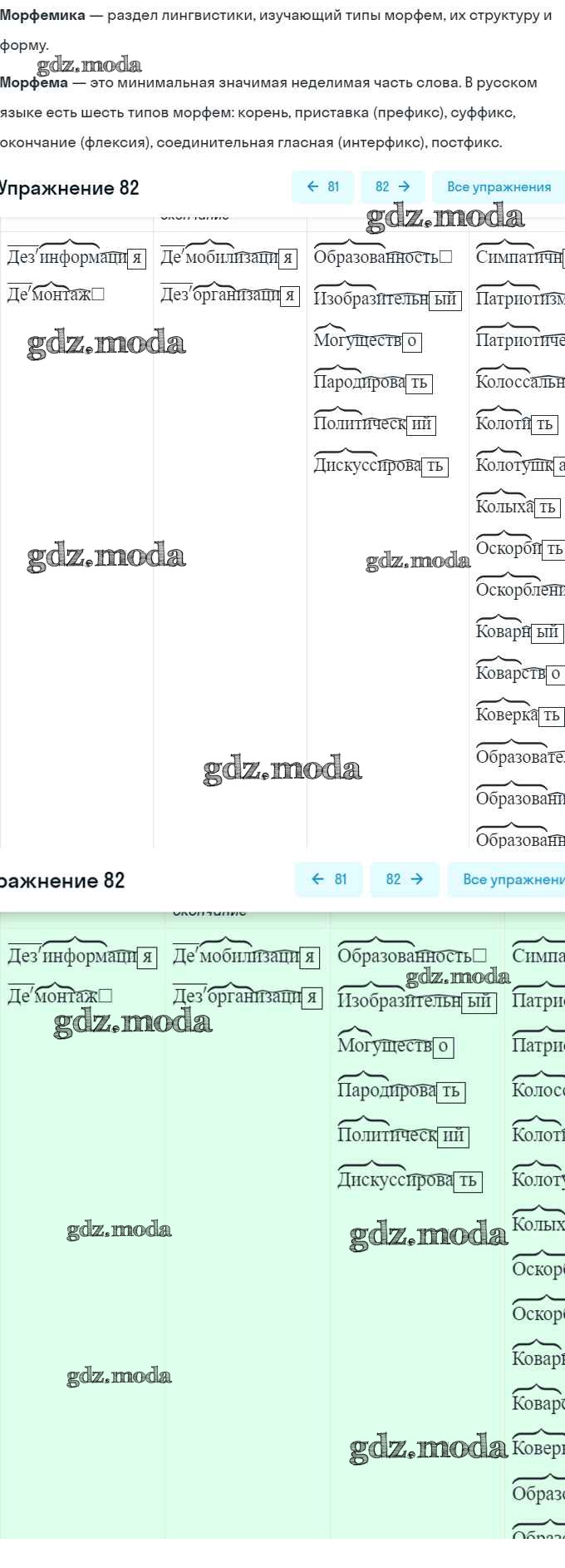 ГДЗ решение к заданию № 82 Русский язык 6 класс рабочая тетрадь Гостева Ю.Н. Экзамен 2015 ФГОС бесплатно на гдз.мода!