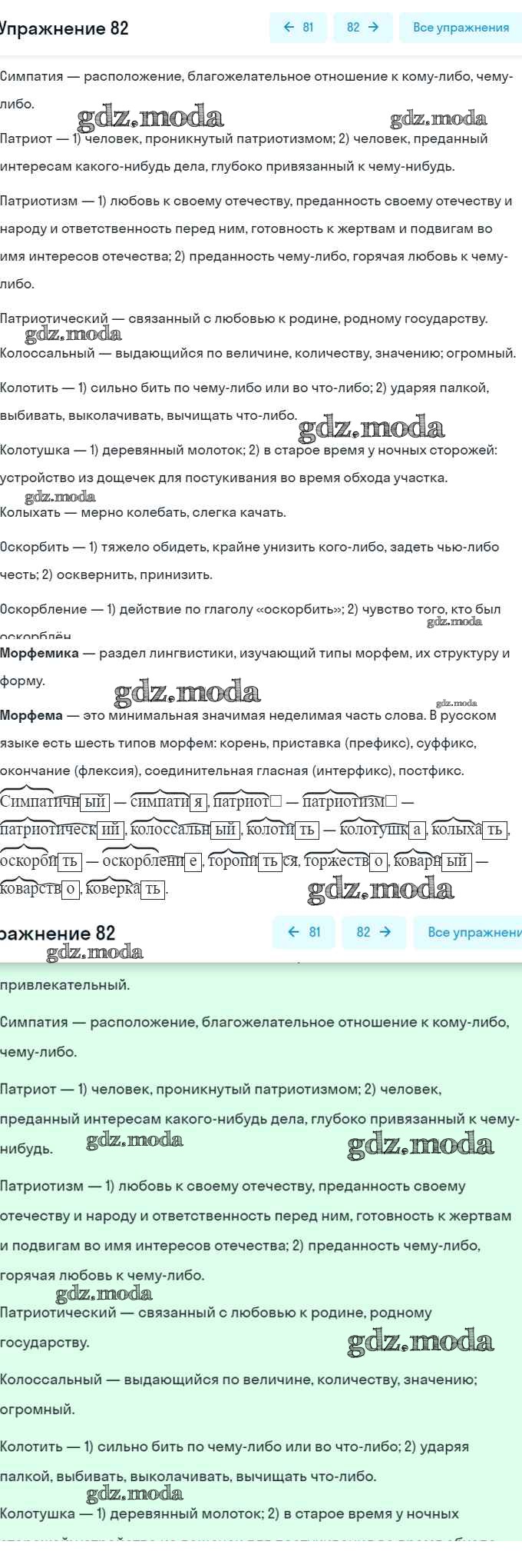 ОТВЕТ на задание № 82 Рабочая тетрадь по Русскому языку 6 класс Гостева УМК