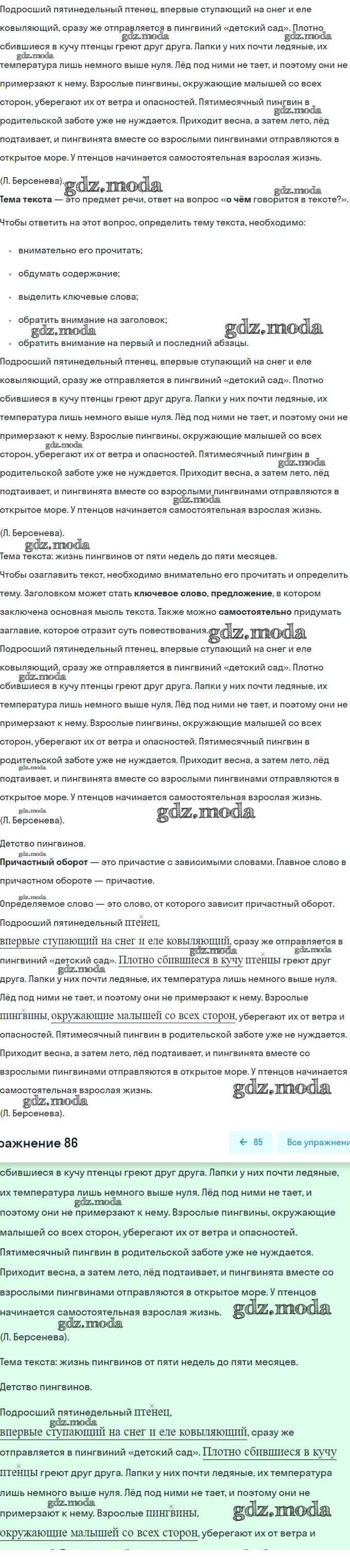ОТВЕТ на задание № 86 Рабочая тетрадь по Русскому языку 6 класс Гостева УМК