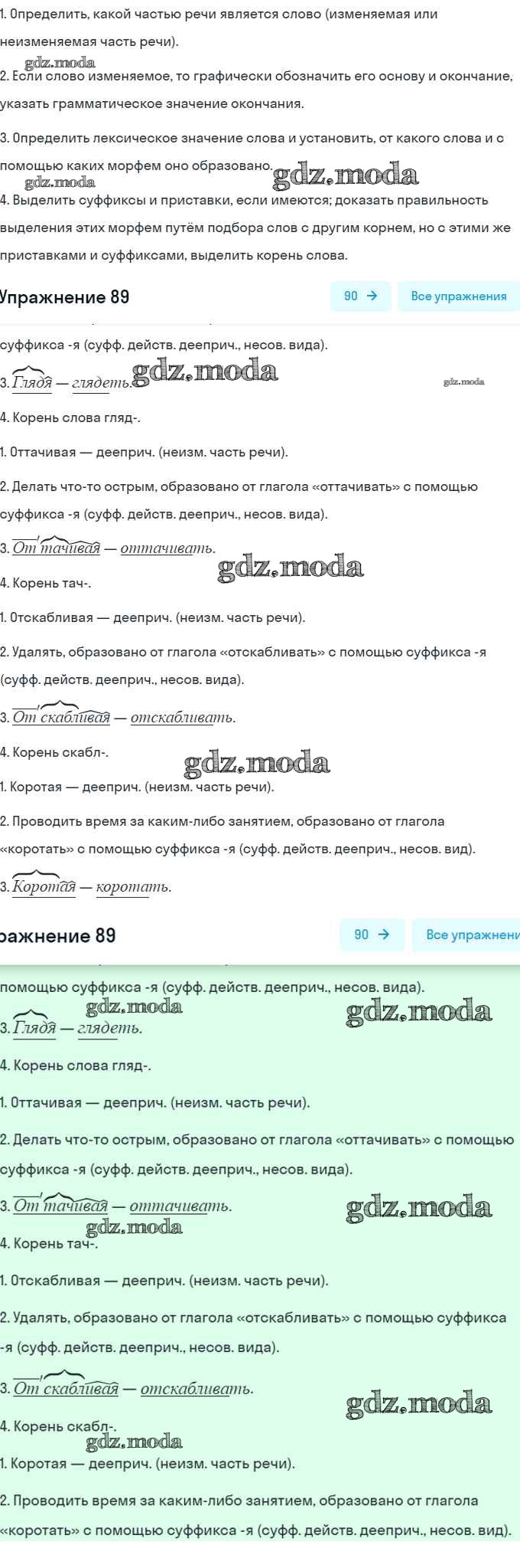 ОТВЕТ на задание № 89 Рабочая тетрадь по Русскому языку 6 класс Гостева УМК