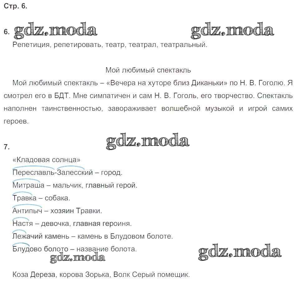 ГДЗ решение к заданию № 6 Русский язык 6 класс рабочая тетрадь Ларионова Л.Г. (к уч. Разумовской) Дрофа 2014 ФГОС бесплатно на гдз.мода!