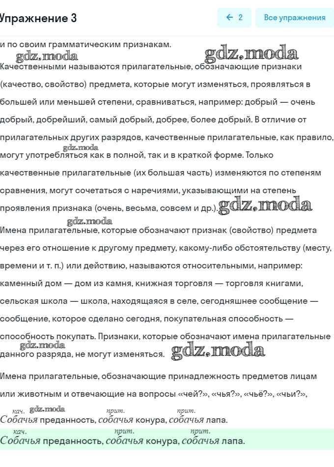 часть 2 / разряды прилагательных по значению. притяжательые прилагательные / 3