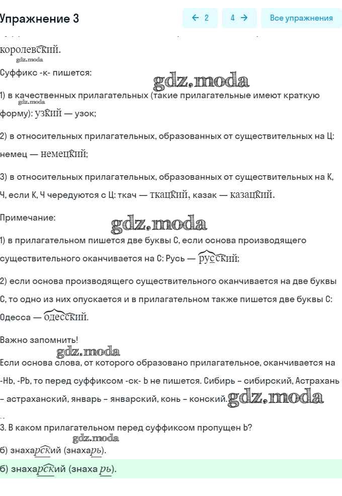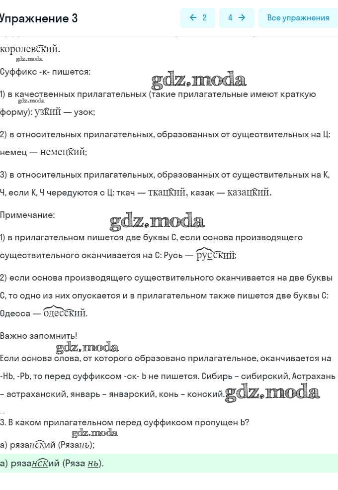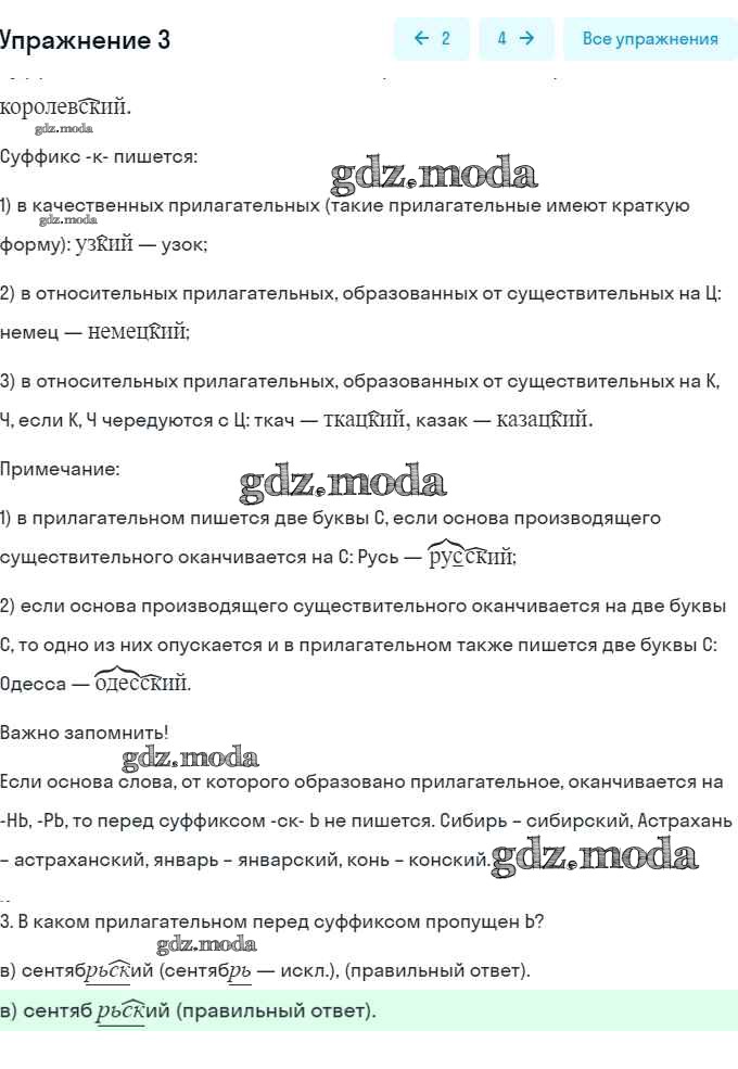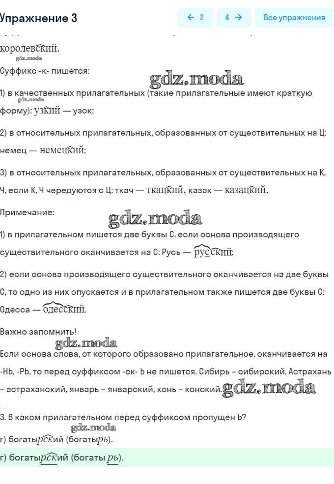 часть 2 / правописание прилагательных с суффиксами -ск- и -к- / 3