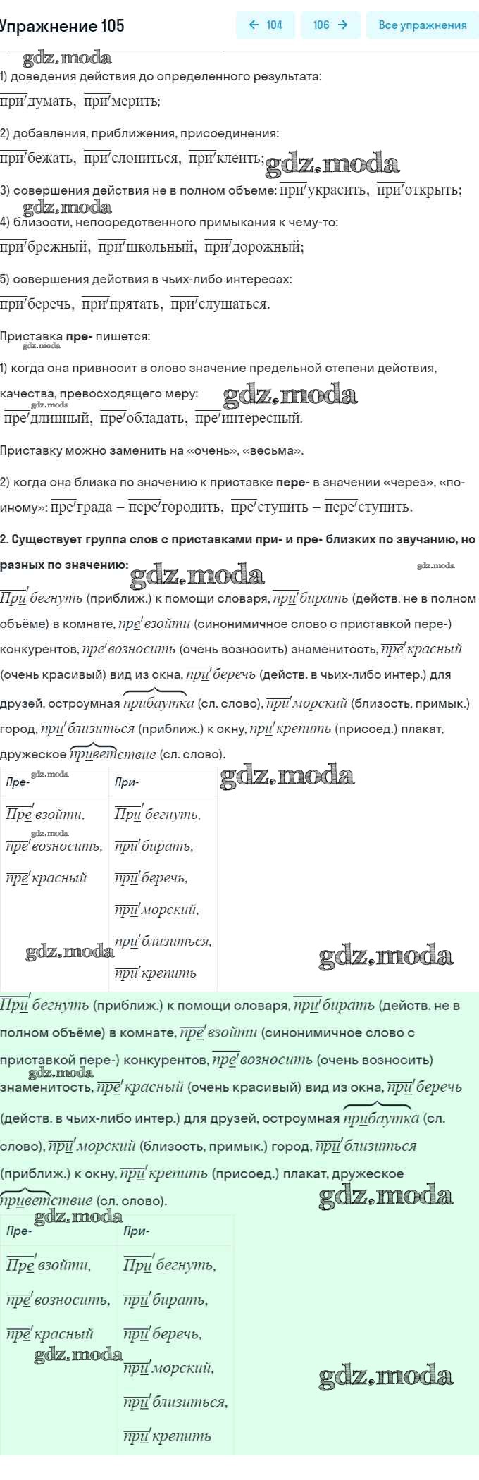 ОТВЕТ на задание № 105 Рабочая тетрадь по Русскому языку 6 класс Янченко