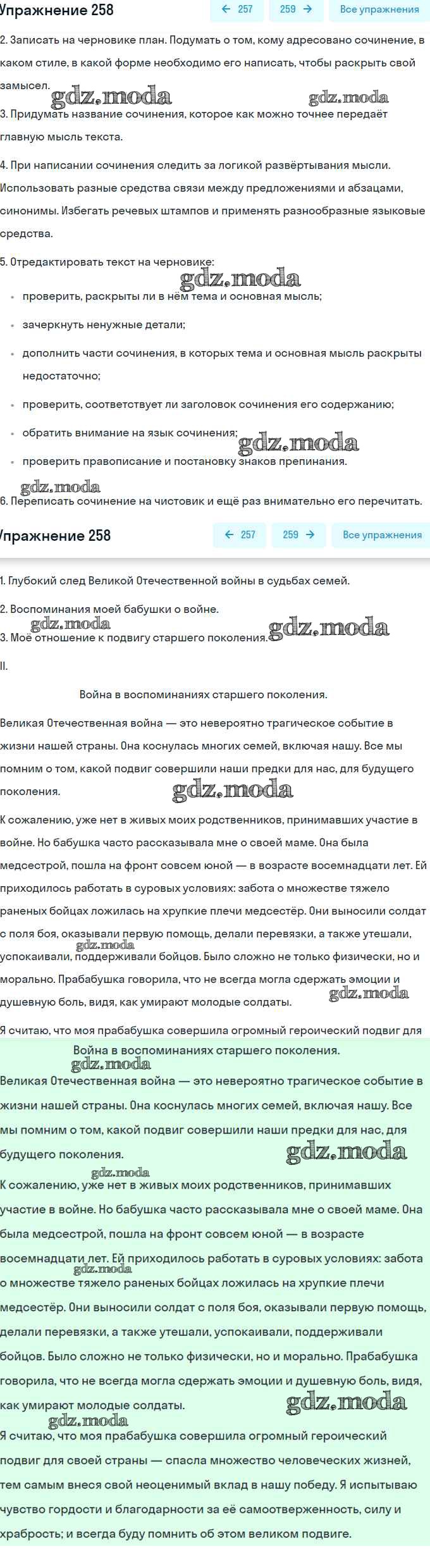 ОТВЕТ на задание № 258 Рабочая тетрадь по Русскому языку 6 класс Янченко