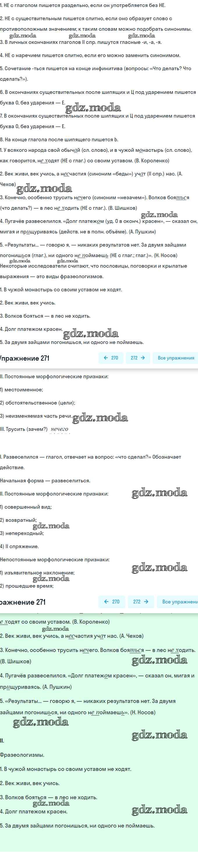 ОТВЕТ на задание № 271 Рабочая тетрадь по Русскому языку 6 класс Янченко