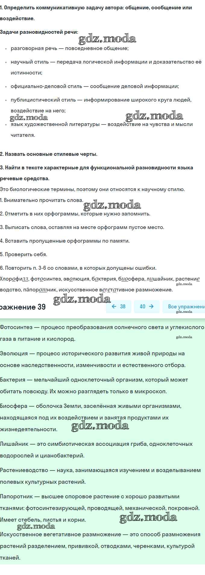 ОТВЕТ на задание № 39 Рабочая тетрадь по Русскому языку 6 класс Янченко