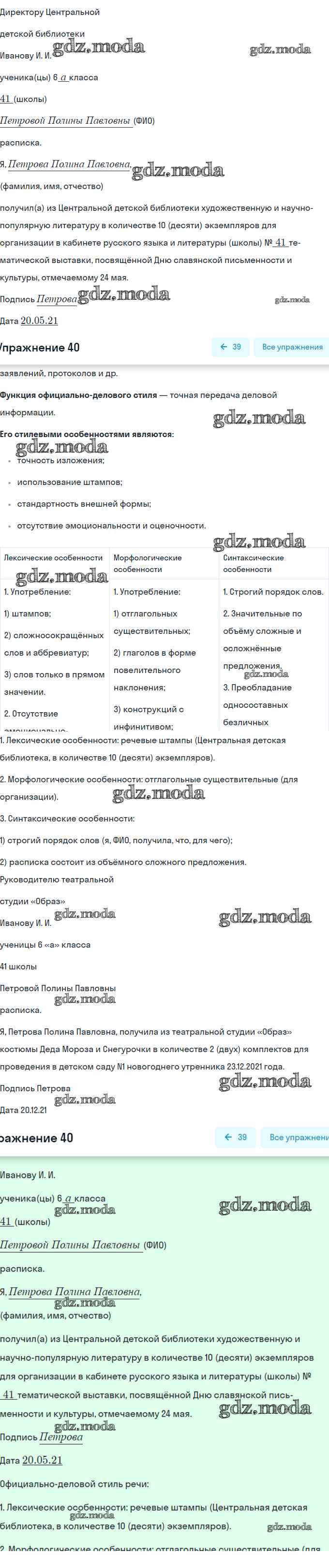 ОТВЕТ на задание № 40 Рабочая тетрадь по Русскому языку 6 класс Янченко