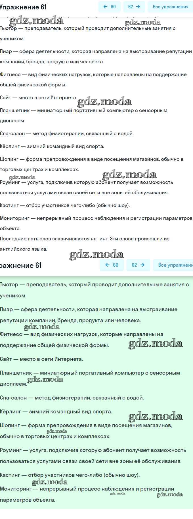 ОТВЕТ на задание № 61 Рабочая тетрадь по Русскому языку 6 класс Янченко