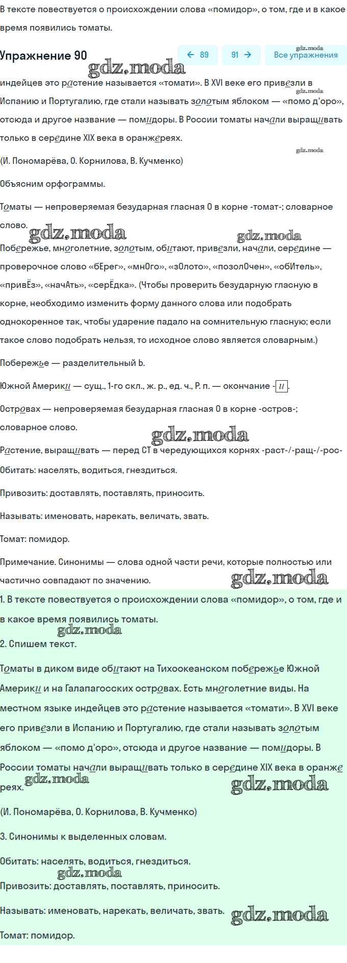 ОТВЕТ на задание № 90 Рабочая тетрадь по Русскому языку 6 класс Янченко