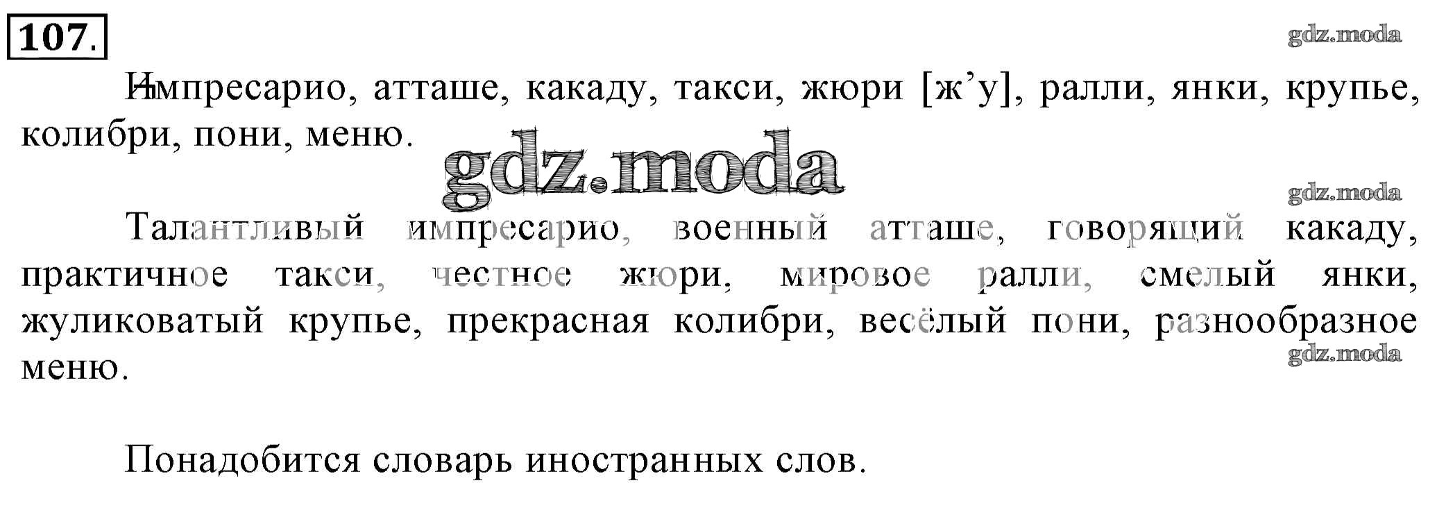 ОТВЕТ на задание № 107 Учебник по Русскому языку 6 класс Разумовская Вертикаль
