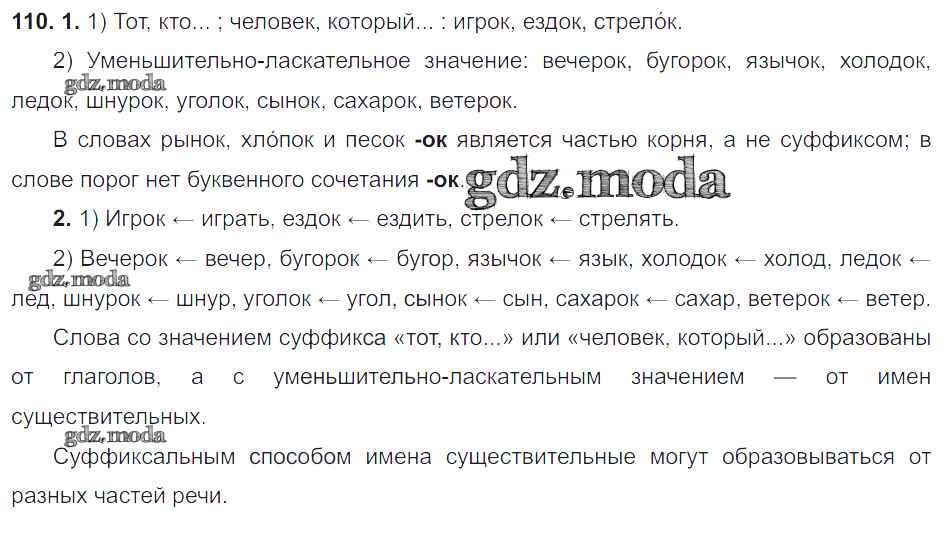 ОТВЕТ на задание № 110 Учебник по Русскому языку 6 класс Разумовская Вертикаль