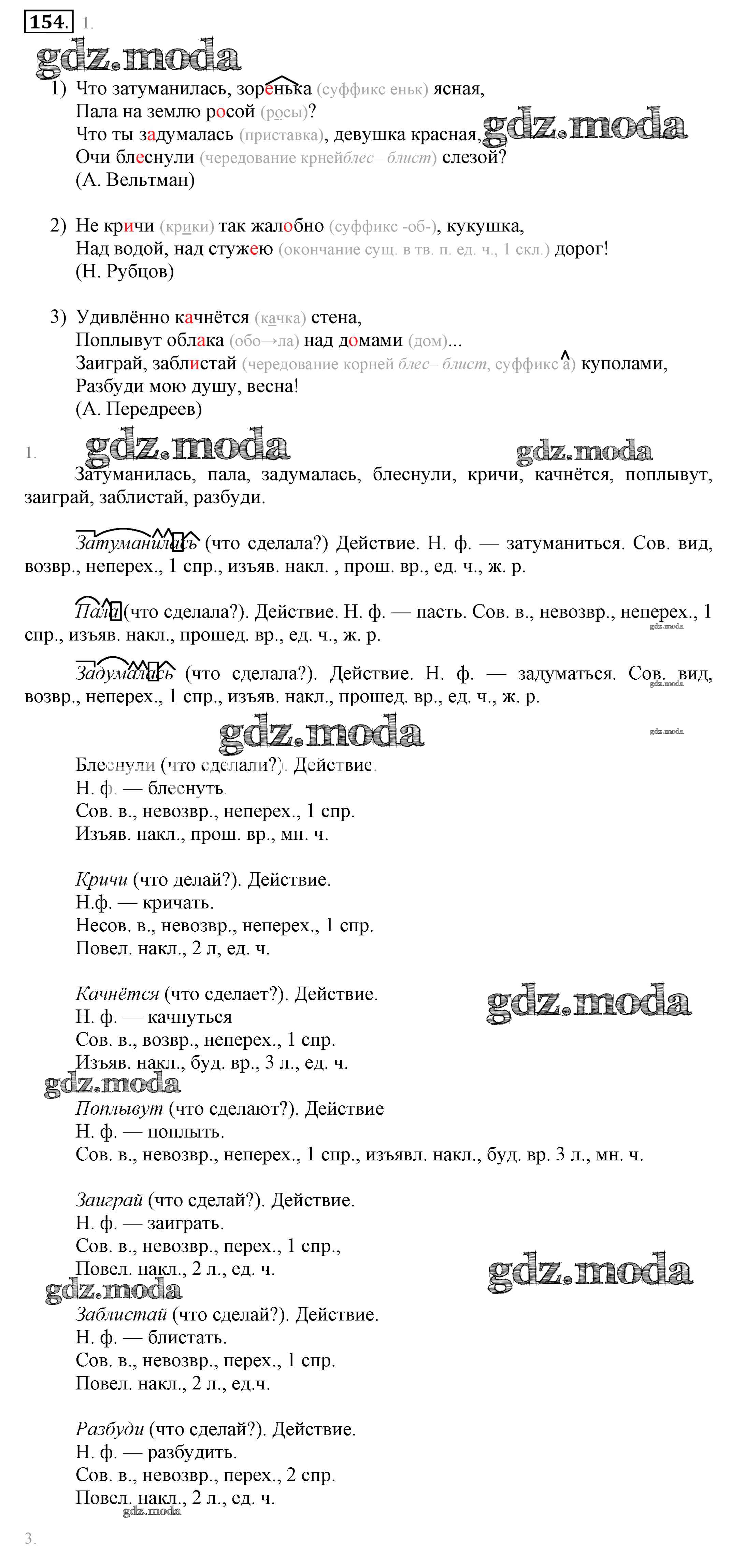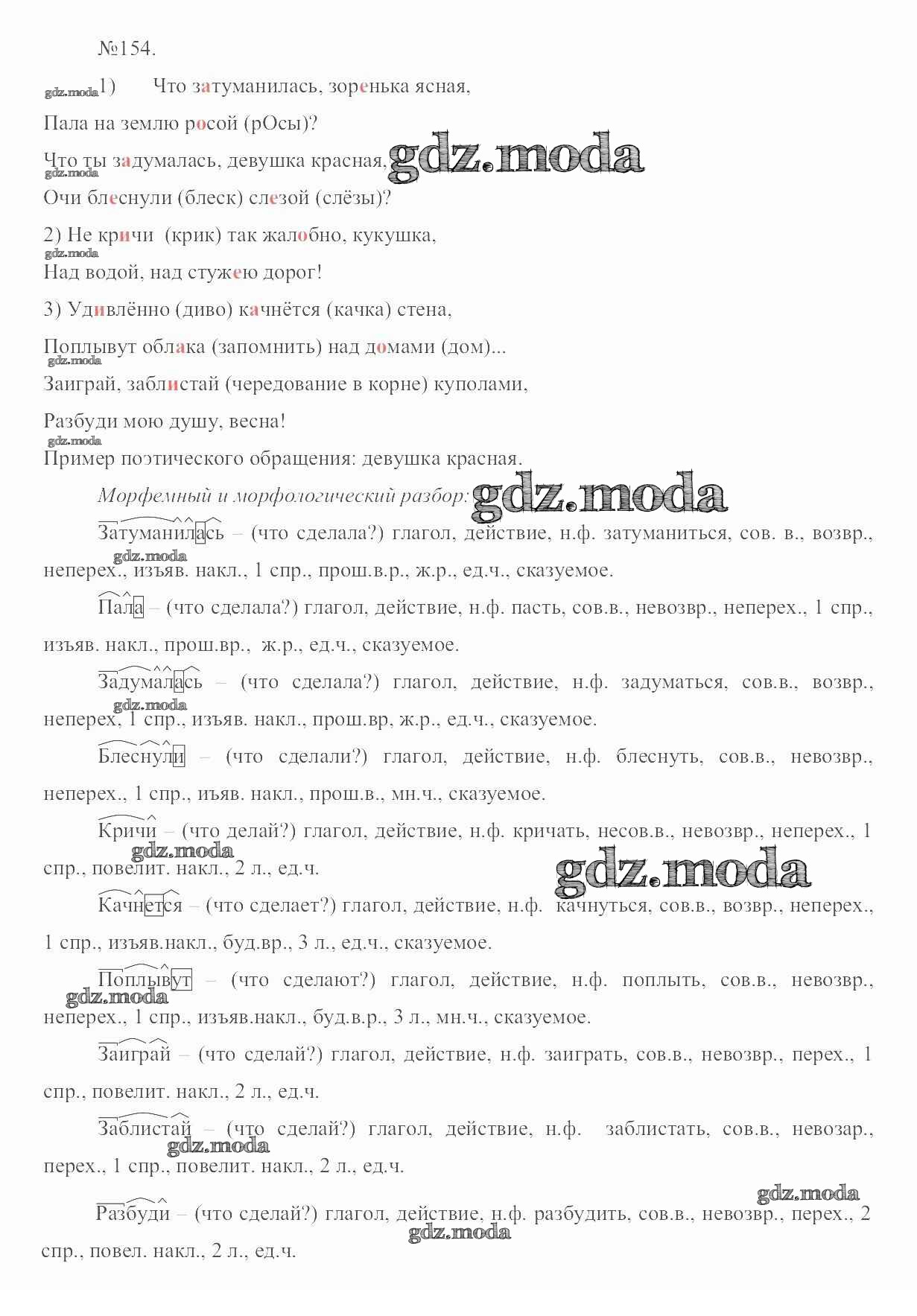 ОТВЕТ на задание № 154 Учебник по Русскому языку 6 класс Разумовская Вертикаль