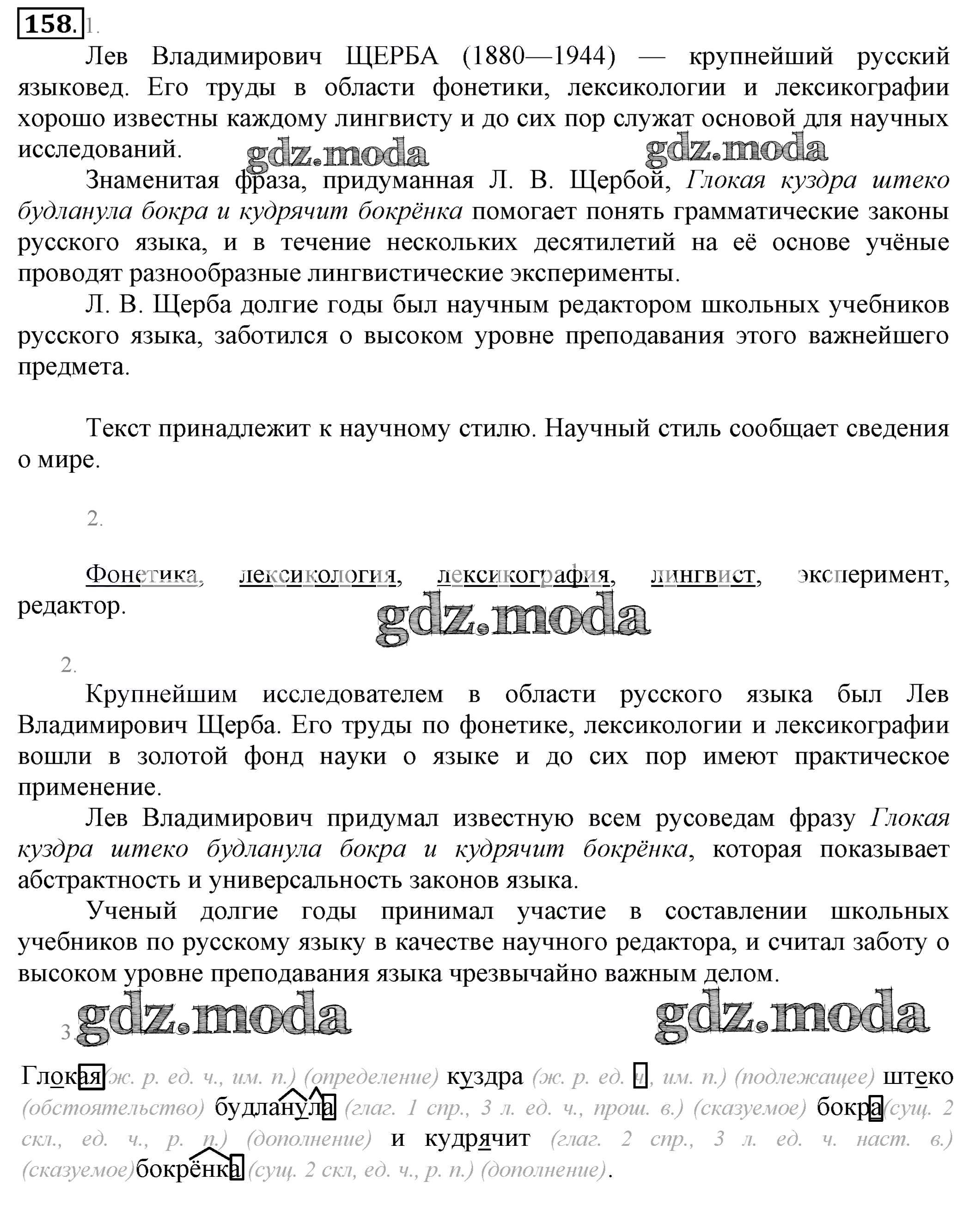 ОТВЕТ на задание № 158 Учебник по Русскому языку 6 класс Разумовская Вертикаль