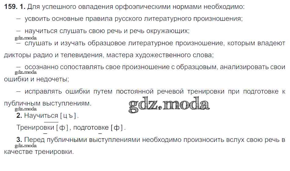 ОТВЕТ на задание № 159 Учебник по Русскому языку 6 класс Разумовская Вертикаль