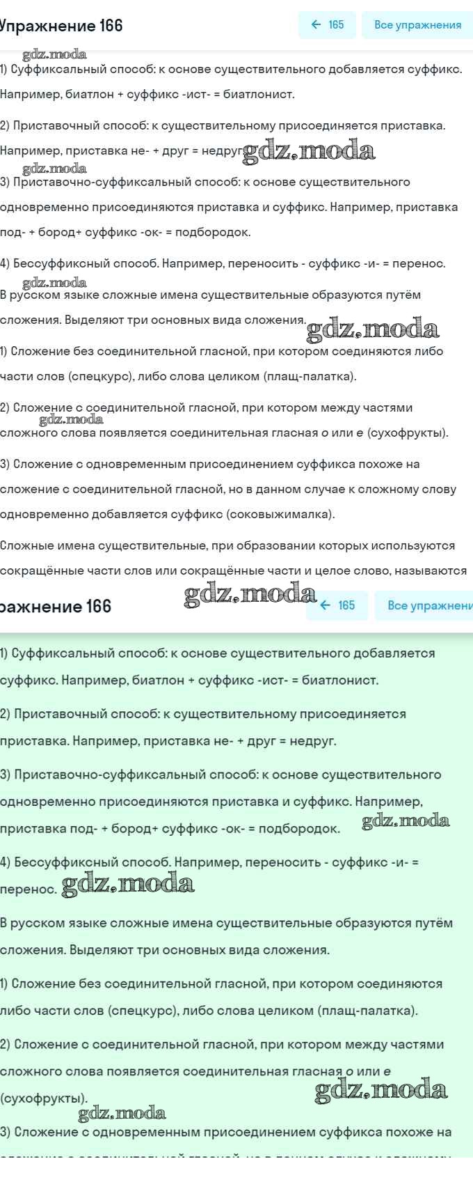 ОТВЕТ на задание № 166 Учебник по Русскому языку 6 класс Разумовская Вертикаль