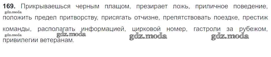 ОТВЕТ на задание № 169 Учебник по Русскому языку 6 класс Разумовская Вертикаль