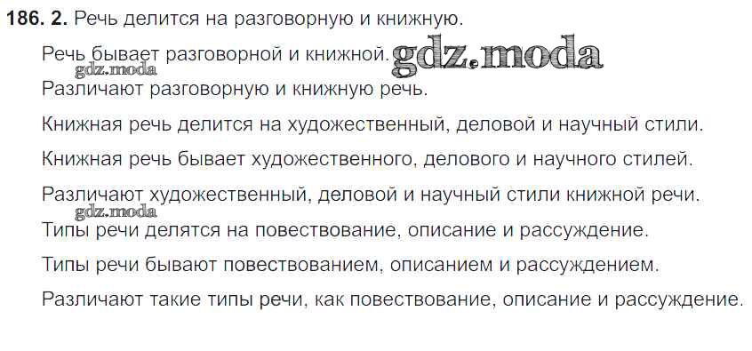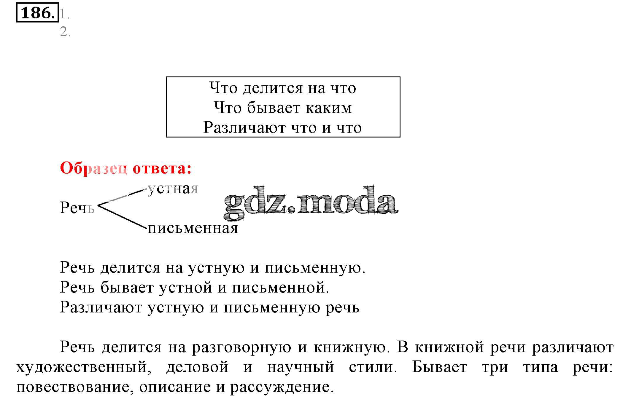 ОТВЕТ на задание № 186 Учебник по Русскому языку 6 класс Разумовская Вертикаль