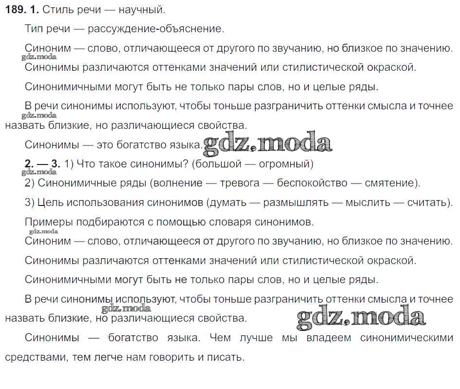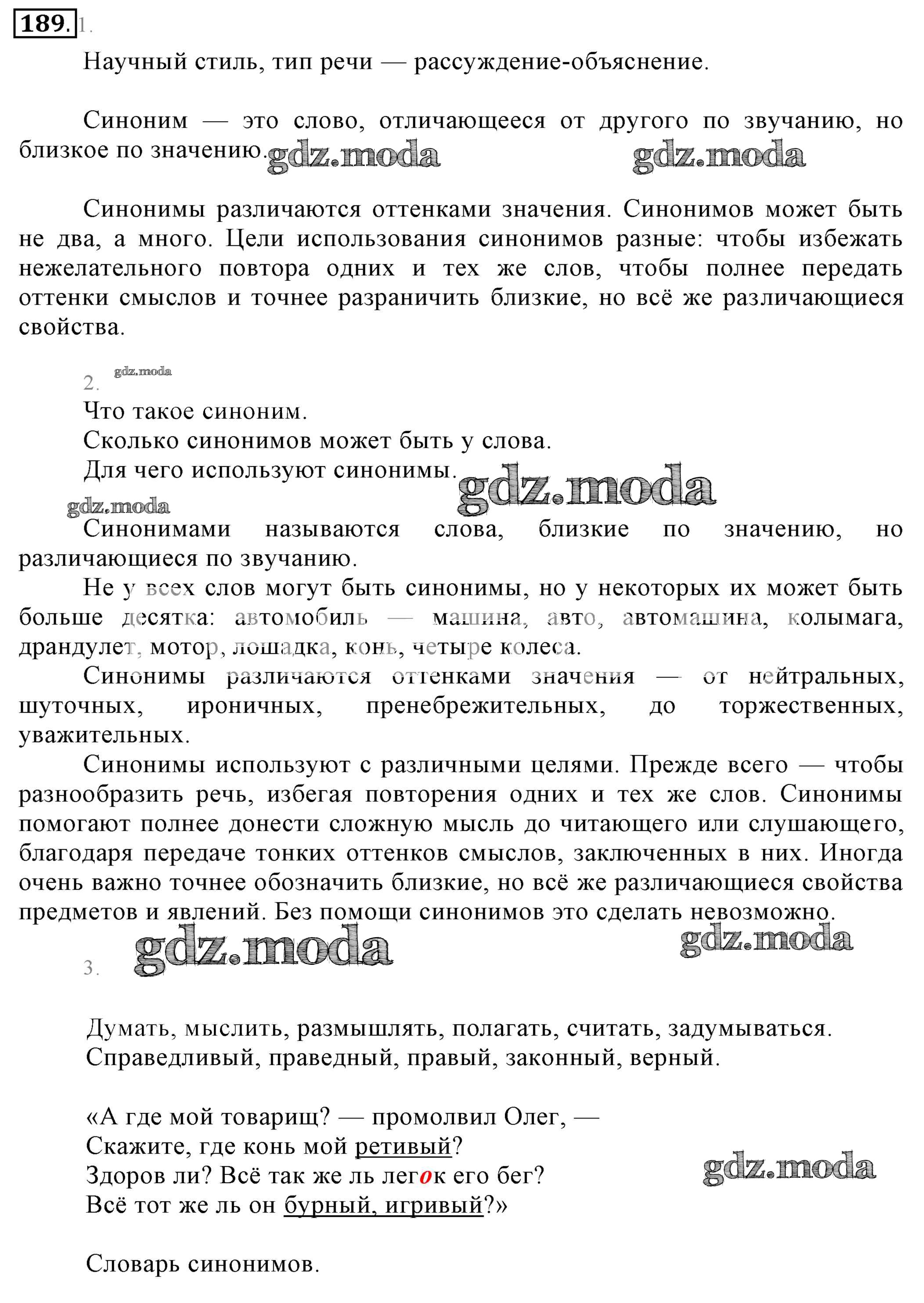 ОТВЕТ на задание № 189 Учебник по Русскому языку 6 класс Разумовская Вертикаль
