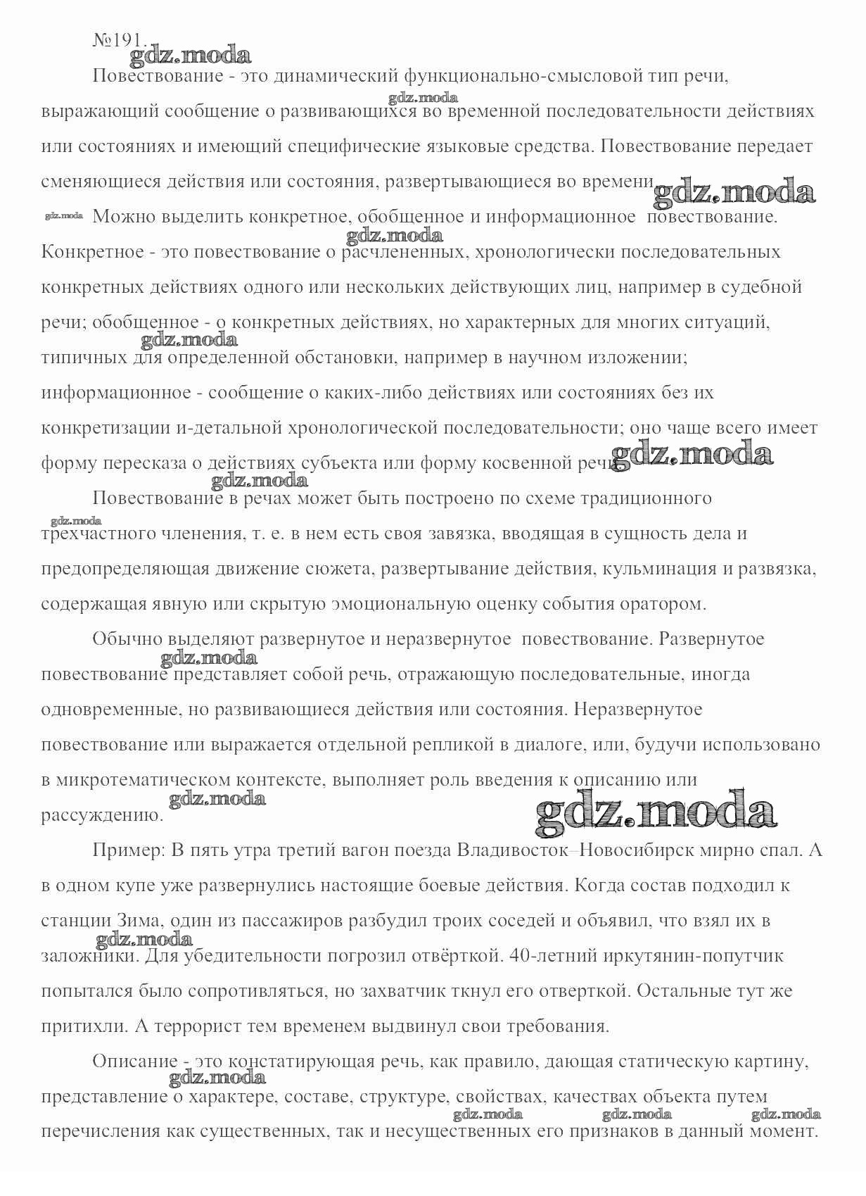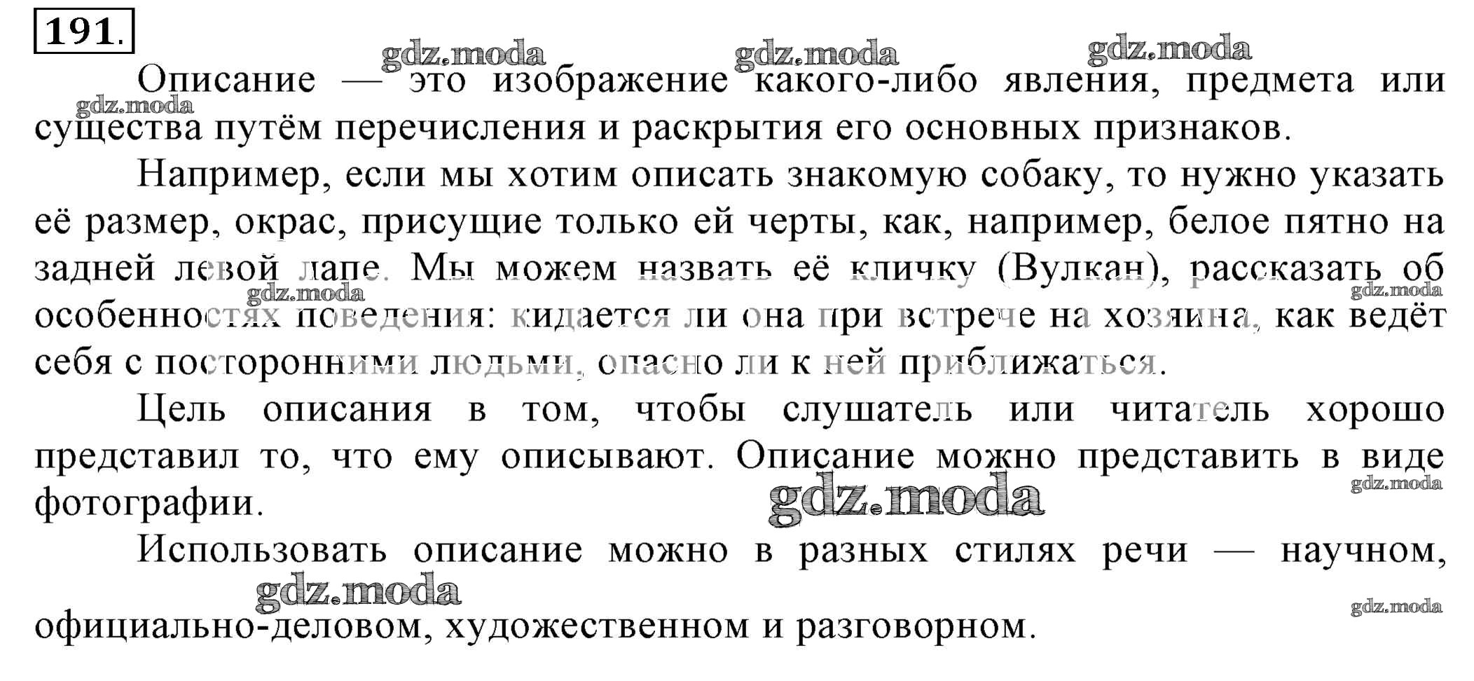 ОТВЕТ на задание № 191 Учебник по Русскому языку 6 класс Разумовская Вертикаль