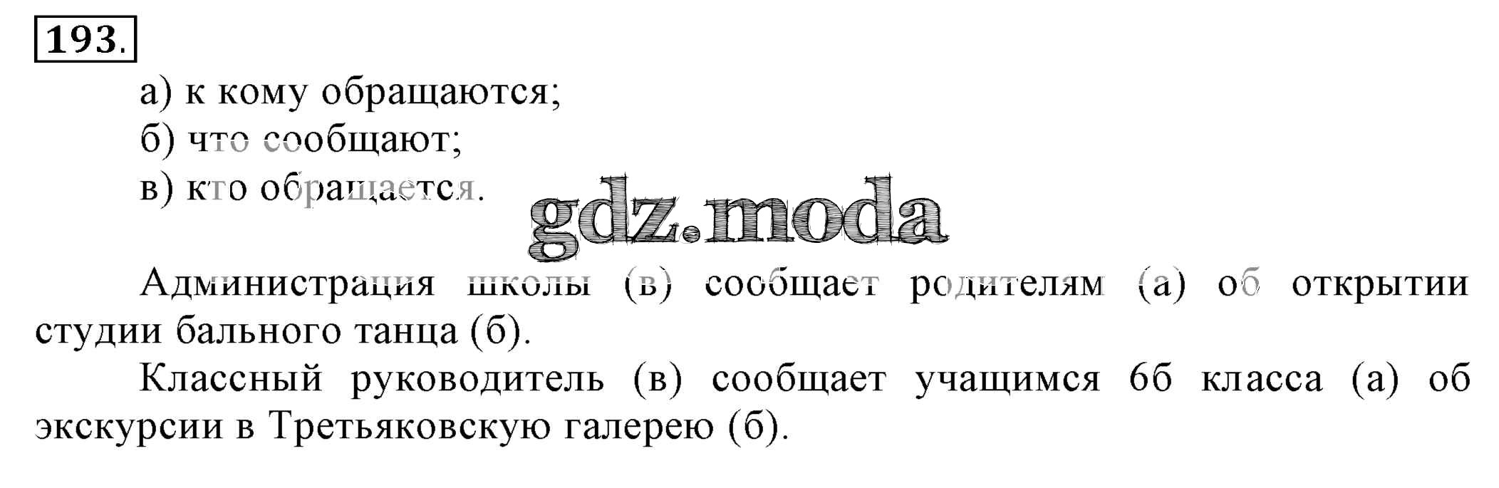 ОТВЕТ на задание № 193 Учебник по Русскому языку 6 класс Разумовская Вертикаль