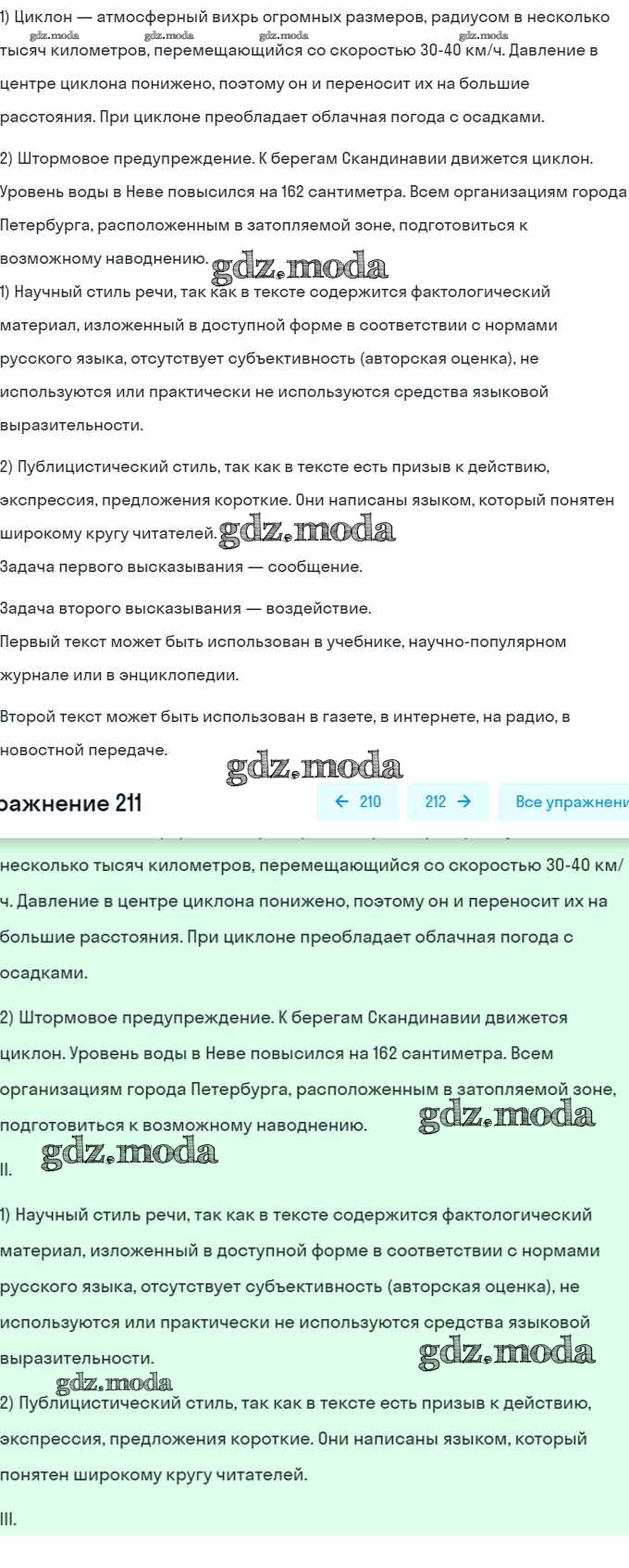 ОТВЕТ на задание № 211 Учебник по Русскому языку 6 класс Разумовская Вертикаль